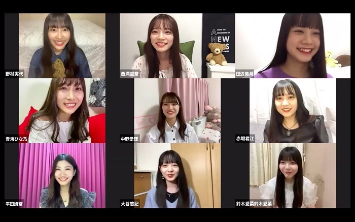 まずは、今年6月5日~7日に“カミフレは1週間で女優になれるのか?”というテーマで、初めてZoom演劇にチャレンジした作品『怨ラインノミ』に出演したメンバー野村実代、大谷悠妃、中野愛理、平田詩奈、赤堀君江が登場し、6月7日の千秋楽公演を配信。続けて、西満里奈、青海ひな乃、鈴木愛菜、田辺美月が登場し、7月23日~26日に上演の『罪TO罰』から7月25日の公演を配信した。