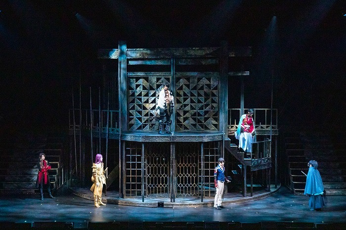 それは演出面でも同様。舞台上、まず目を惹かれたのが無骨だが計算し尽くされた組み木細工のような2階建てのセット。質実剛健な新撰組の物語を彩るのにとても似合っている。場面によって回転させることで様々に表情を変え、視覚的にも心情的にもこちらに訴えかけてくるモノが豊富。映像を多用せず、ダイレクトな見せ方で演劇的な陰影を伝えてくれた。全体を黒く落とした空間にソリッドに映える照明の数々も美しかった(キャラクターのイメージカラーを利かせる心憎さも!)。