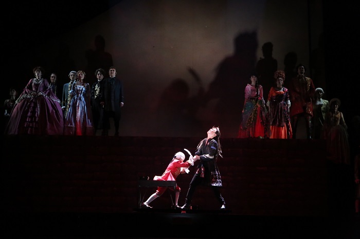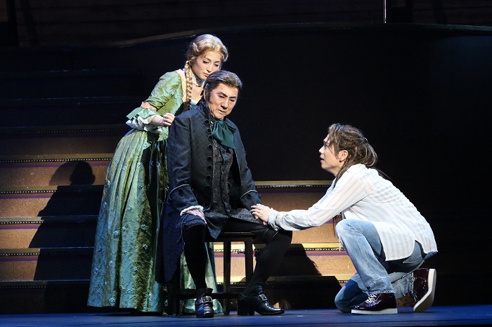 能の化身・アマデ”が寄り添い、作曲にいそしんでいた。しかし、青年ヴォルフガングは、ザルツブルクの領主であるコロレド大司教(山口祐一郎)に仕えて作曲をすることに嫌気がさしていた。「大司教に逆らうな」という父と意見が衝突。ついには自分を束縛する大司教に、怒りを爆発させてしまう。