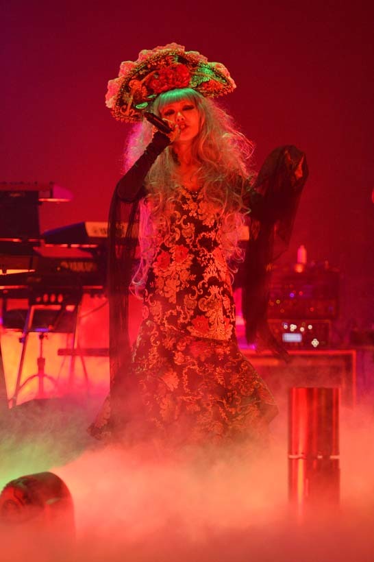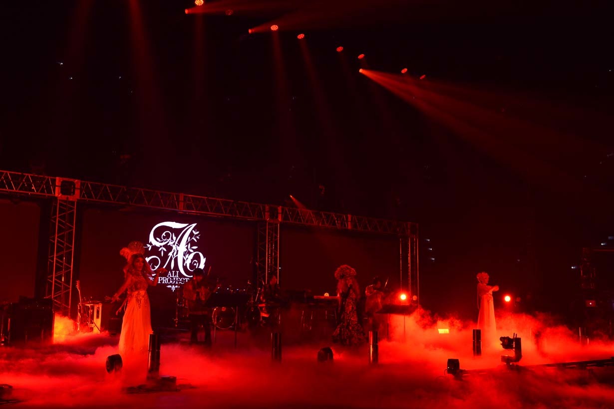 2曲目はJAM Projectと入れ替わりでダンサーを呼び込み、「暗黒天国」(TVアニメ『かみちゃまかりん』OP主題歌)を披露。3曲目には「阿修羅姫」(ゲーム『舞-HiME 運命の系統樹』OP主題歌)を歌い、ALI PROJECTの独特なダークな世界観でステージを染める。この時間は『JAM FES.』であることを忘れるかのような、異質空間を作り上げた。