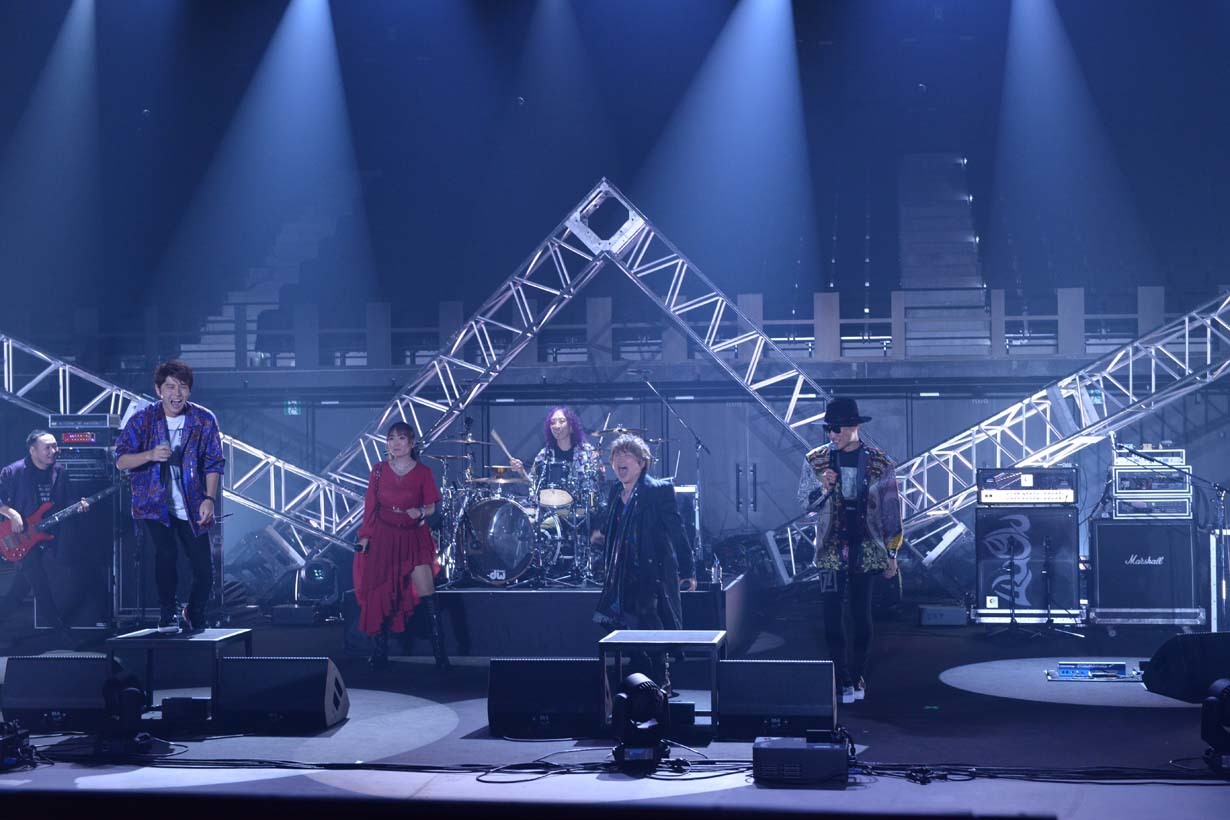 ライブの出だしはJAM Projectの5人が円を作るように立ち、アカペラでのメドレー『JAM Project 20th Anniversary Acappella Session』を披露。「迷宮のプリズナー」から始まり、「VICTORY」「Rocks」「Crest of the Z's」「Wings of the Legend」と豪華に5曲を歌い上げた。オープニングからすでに鳥肌ものだ。