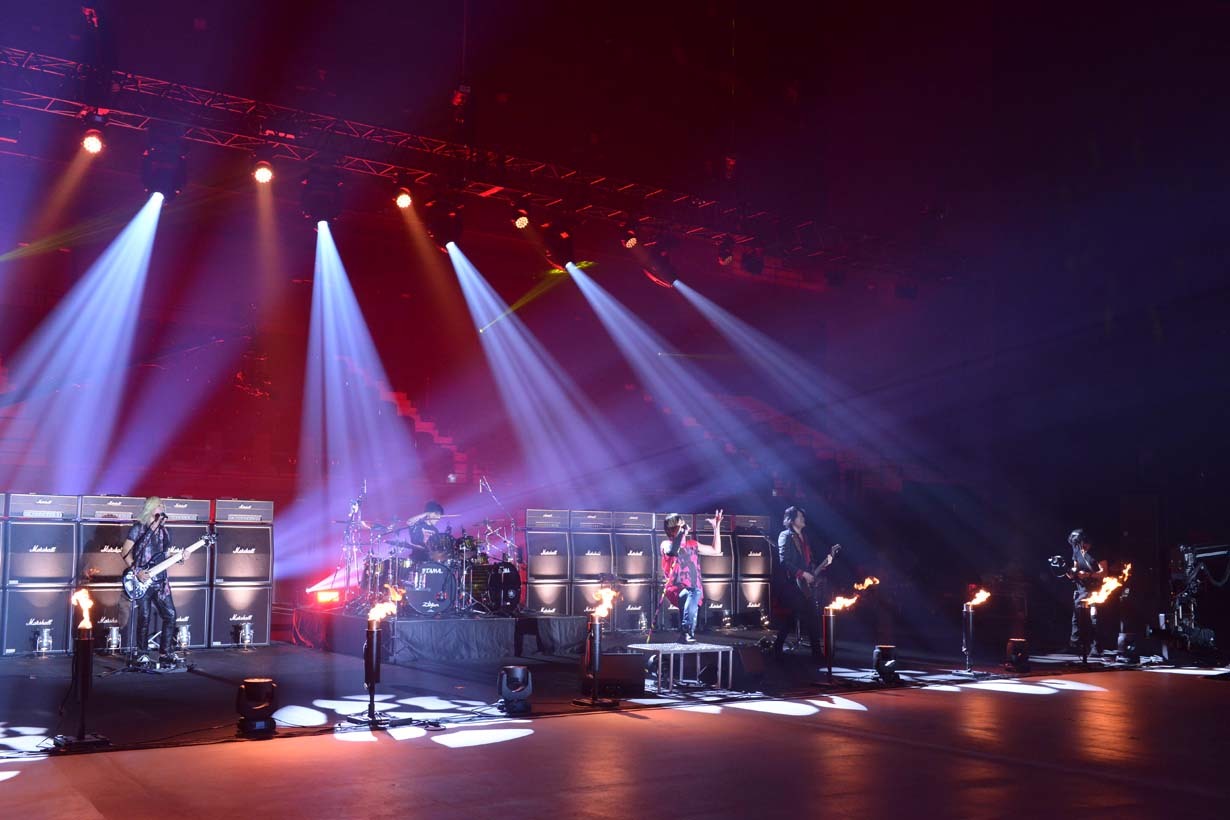 歌い終わりにはJAM Projectの残るメンバーも呼び込み、3曲目にJAM Projectへの提供曲「ROCK 五銃士」をボーカル6人で合唱。最後は9月にリリースしたばかりの新曲「情熱は覚えている」(TVアニメ『バキ』大擂台賽編OPテーマ)を披露。KISHOWは上着を脱いだノースリーブのシャツ姿で、まるでリミッター解除したかのような全力120%の歌声を場内に響き渡らせた。