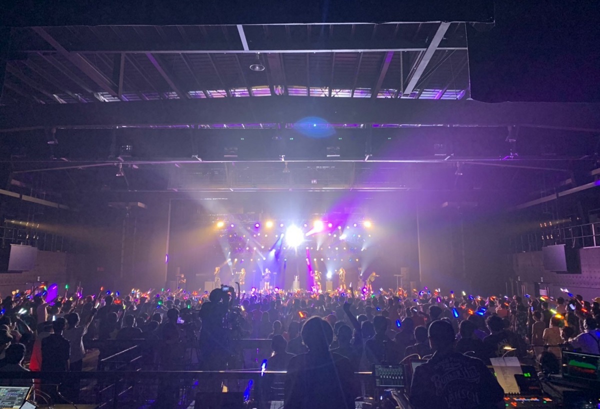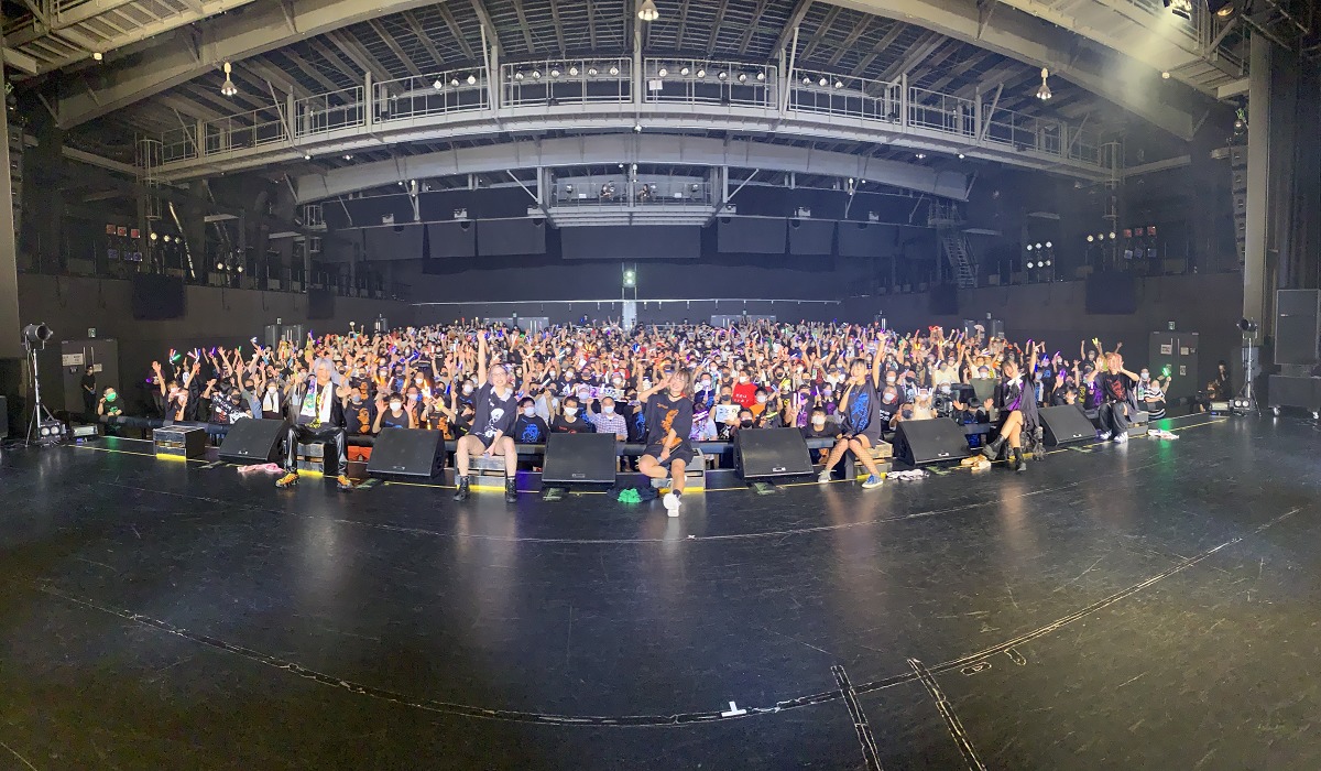 二日よいこの超舌技巧ラップで幕をあけた豊洲ピットワンマン。オープニングナンバーは、「瞬間成仏NEXT YOU→」。各担当歌唱パートでは担当カラーの照明が照らされ、落ちサビから生牡蠣いもこが「さぁ、上を向けよ!」と煽ると会場のボルテージは急上昇。そしてTiNAが神者に呼びかける。