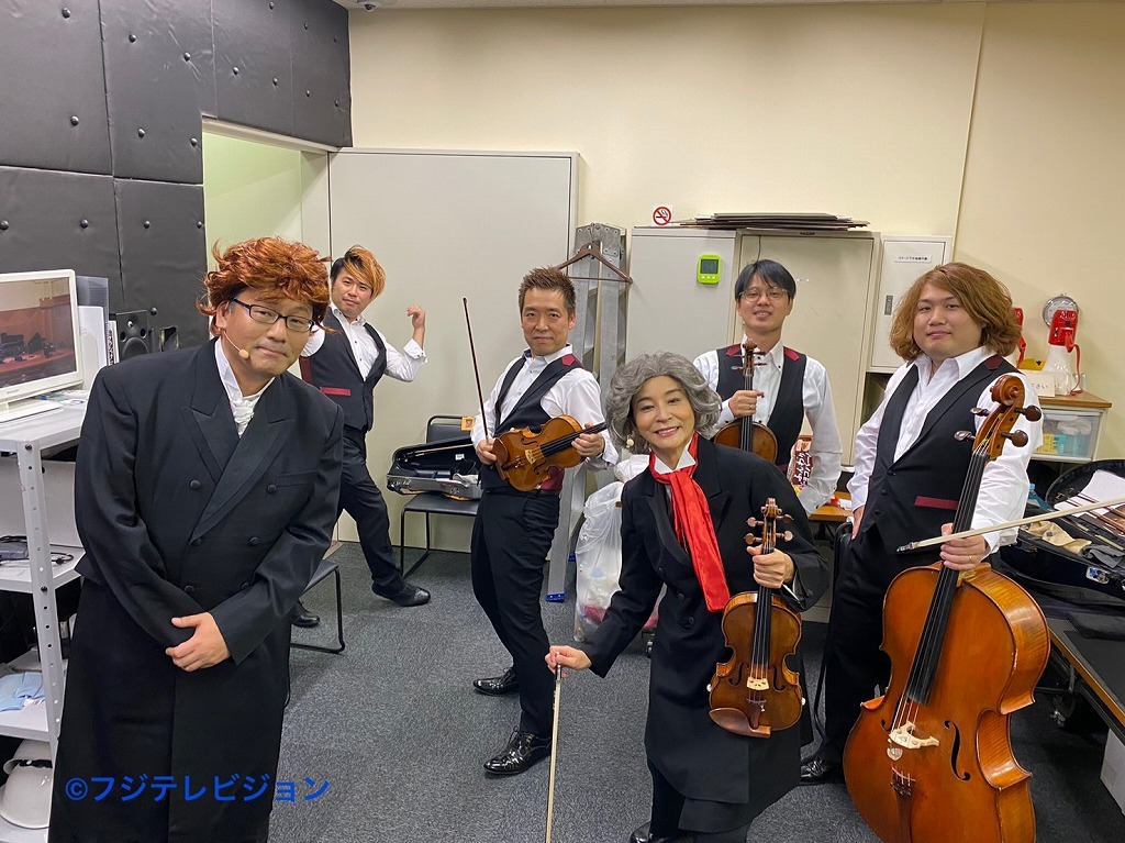 (左から)軽部真一、高嶋ちさ子(ヴァイオリン) (C)フジテレビ