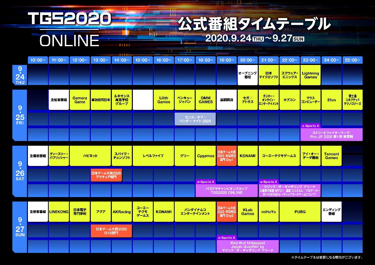 「東京ゲームショウ2020 オンライン」公式番組タイムテーブル