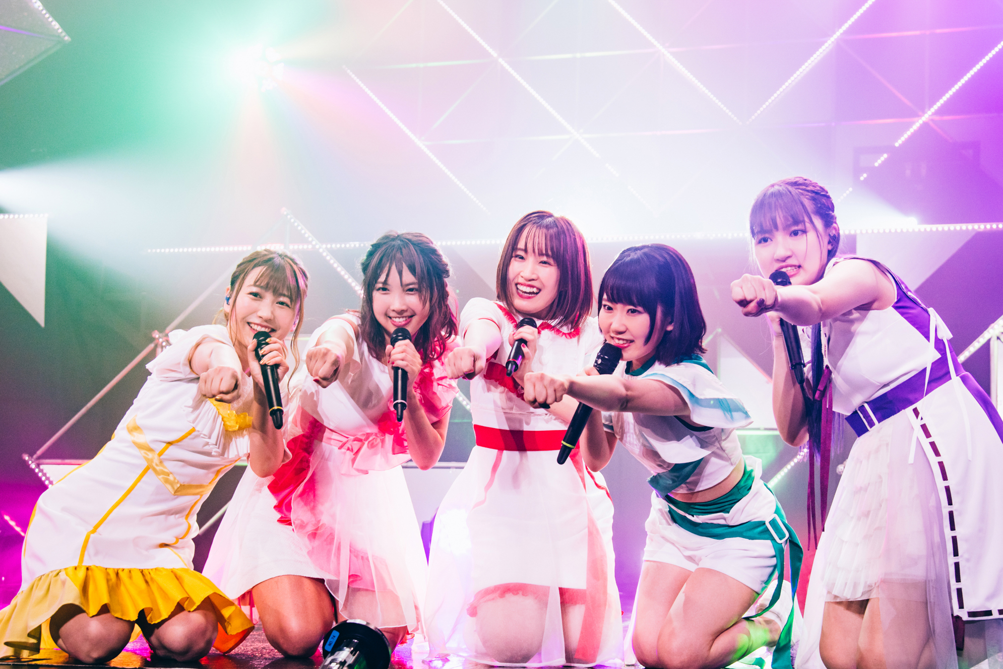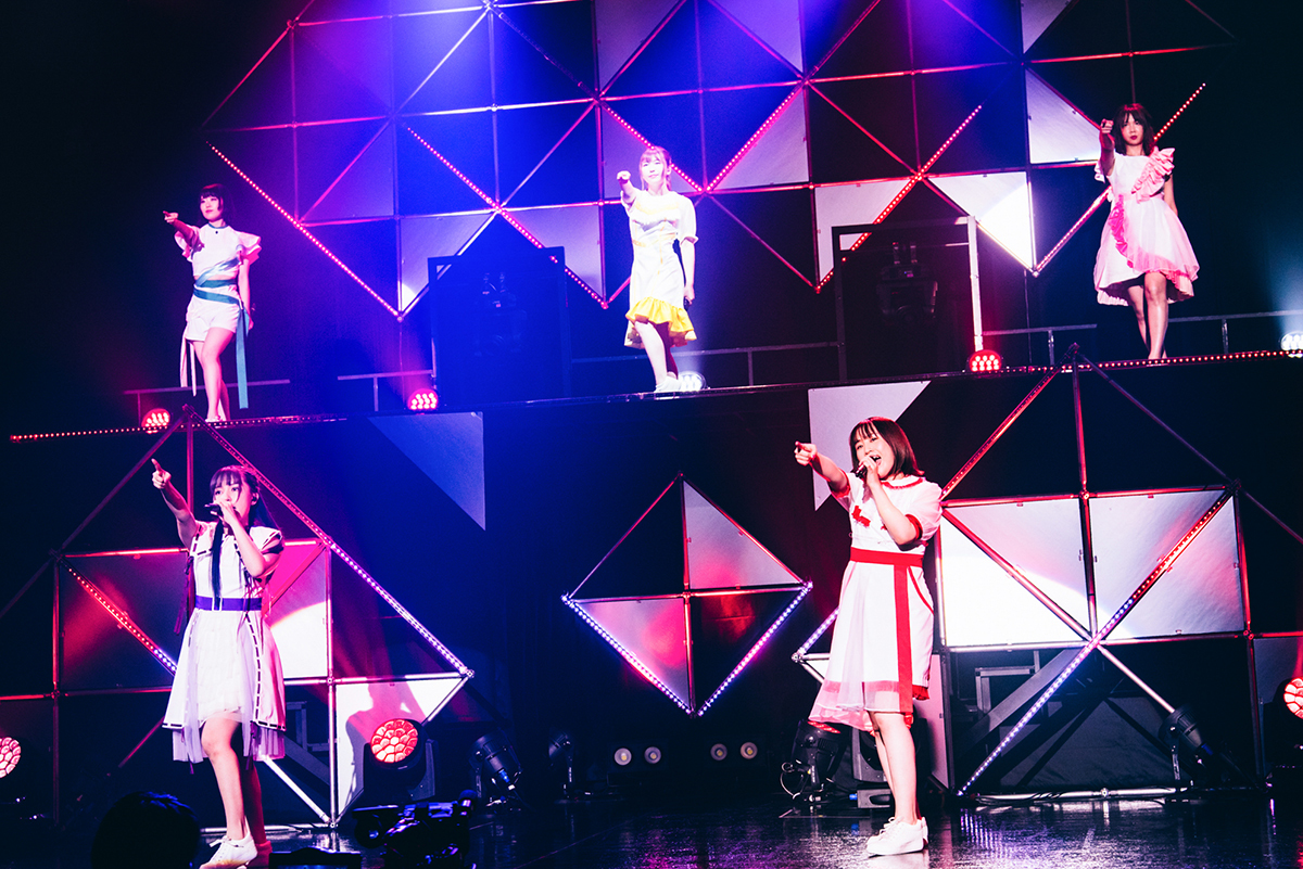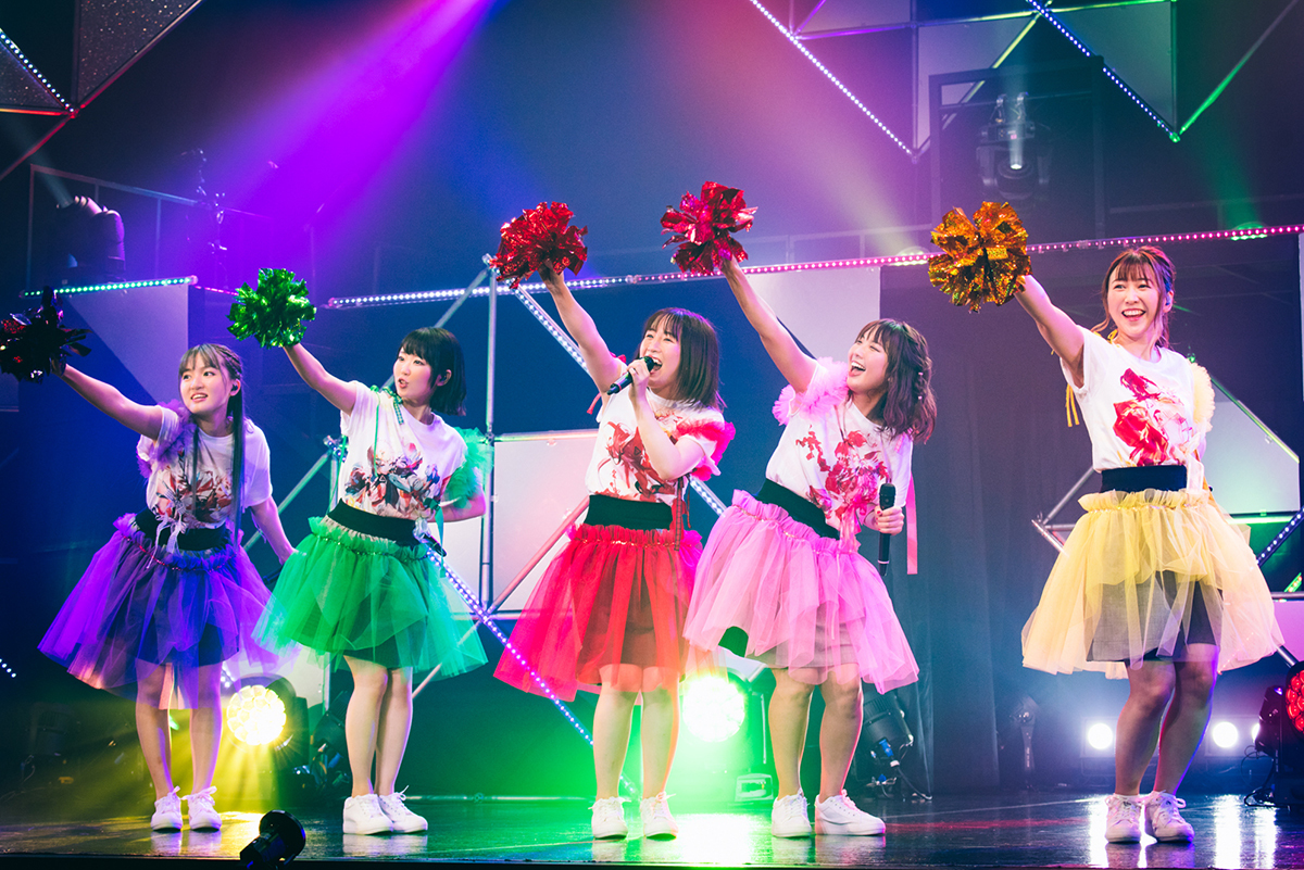 左から…カナメΔ安野希世乃、マキナΔ西田望見、フレイアΔ鈴木みのり、 レイナΔ東山奈央、美雲ΔJUNNA