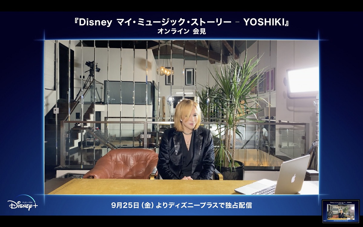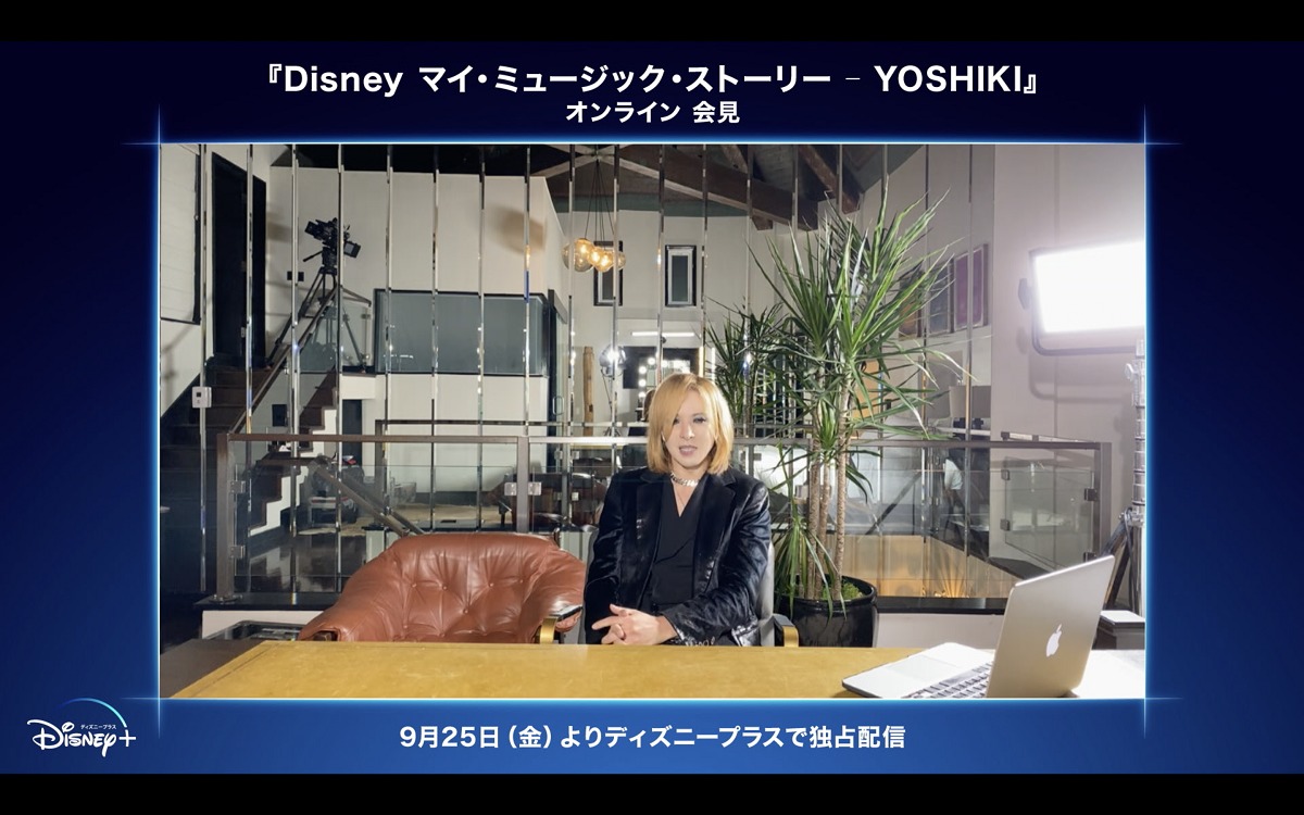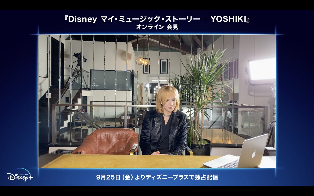 オンライン記者会見には、アメリカ・ロサンゼルスよりYOSHIKIが参加。番組『Disney マイ・ミュージック・ストーリー – YOSHIKI』について、本編では語られなかった裏側を含め、本人の口から様々な話が飛び出した。
