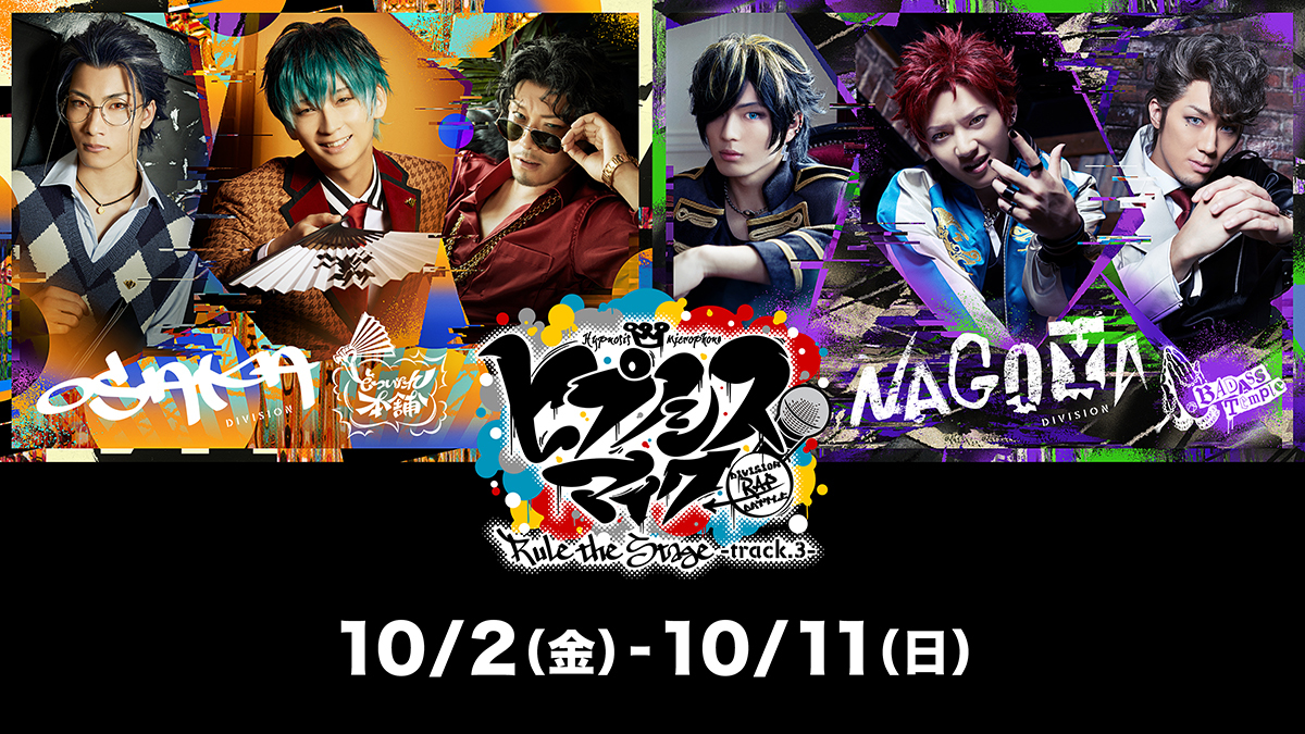 音楽原作キャラクターラッププロジェクト『ヒプノシスマイク -Division Rap Battle-(ヒプマイ)』。このヒプマイから、オオサカ・ディビジョン“どついたれ本舗”とナゴヤ・ディビジョン“Bad Ass Temple”を中心とした舞台化第三弾「ヒプノシスマイク-Division Rap Battle-」Rule the Stage -track.3-が 10月2日(金)から 10月11日(日)まで TOKYO DOME CITY HALLで上演される。