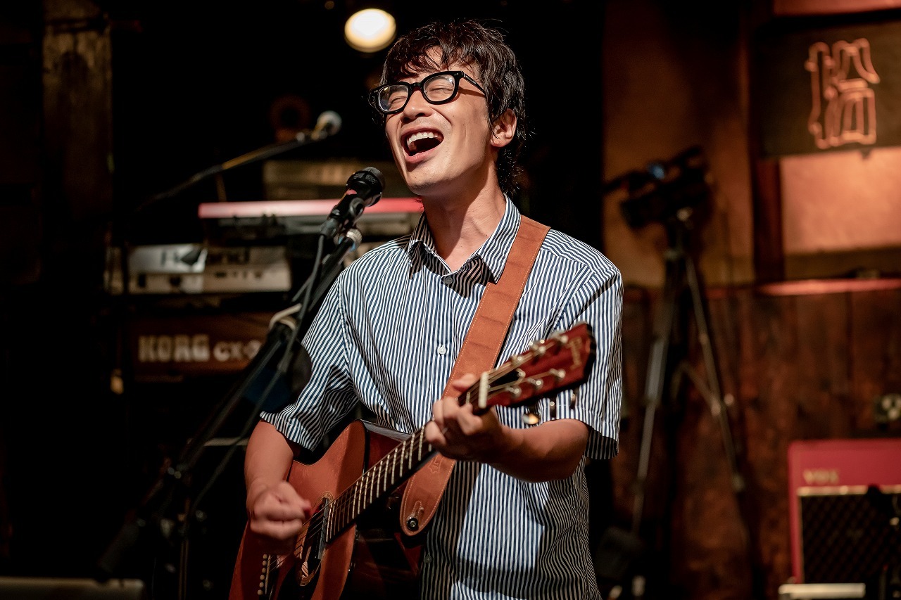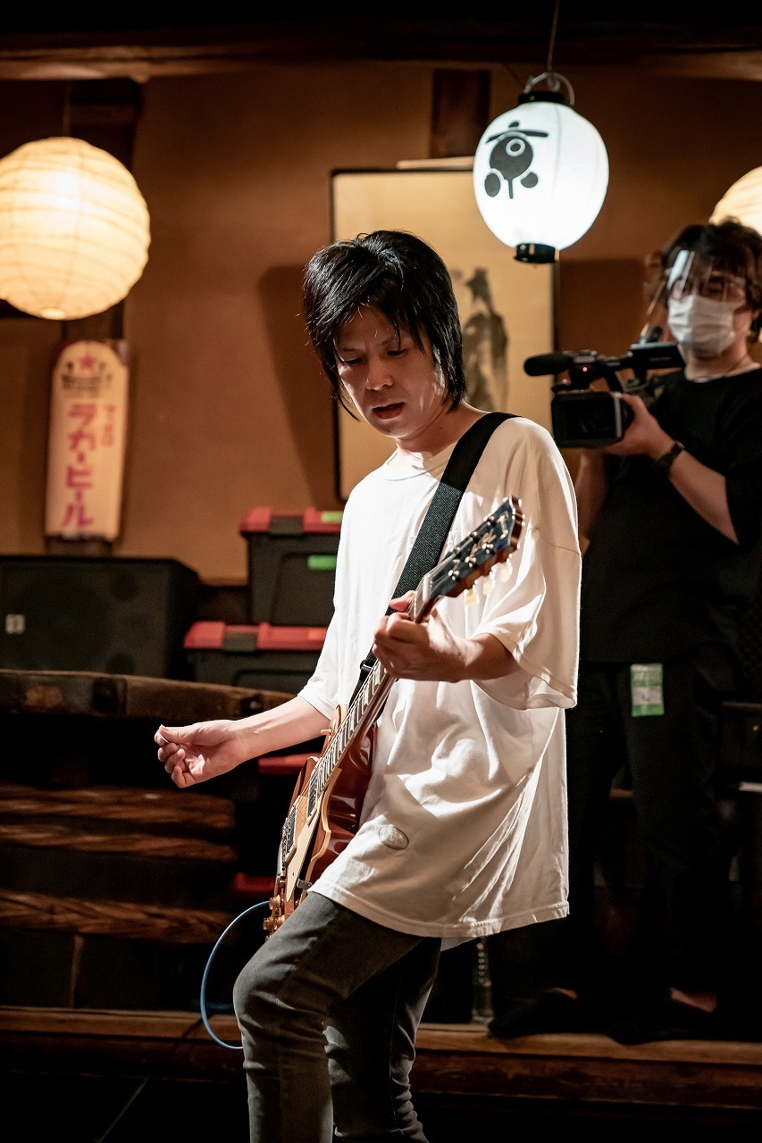 岸田の背中をカメラがとらえ、他には『音博』の提灯だけが映るという場面が無音で映される。その背中で、どれだけのものを背負ってきたんだろうなんて勝手に感慨に耽っていると、お馴染みのイントロが聴こえてきて「東京」へ。京都の街から東京の街に出ていく頃の歌。約23年前の歌だが、東京の街に留まらず、世界の街にも出ていき、様々な音楽を作ってきたくるりが、今こうして原点に立ち戻るかの様に京都の拾得で歌っている姿はエモーショナル過ぎた……。