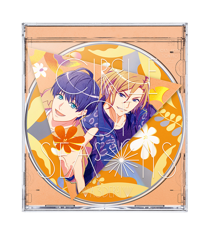 10月21日に発売されるOP主題歌『Circle of Seasons』のジャケット写真も、万里と紬だ。期間限定の特別仕様として、春夏の「Act! Addict! Actors!」とおなじくトライアングルジャケットとなっている。