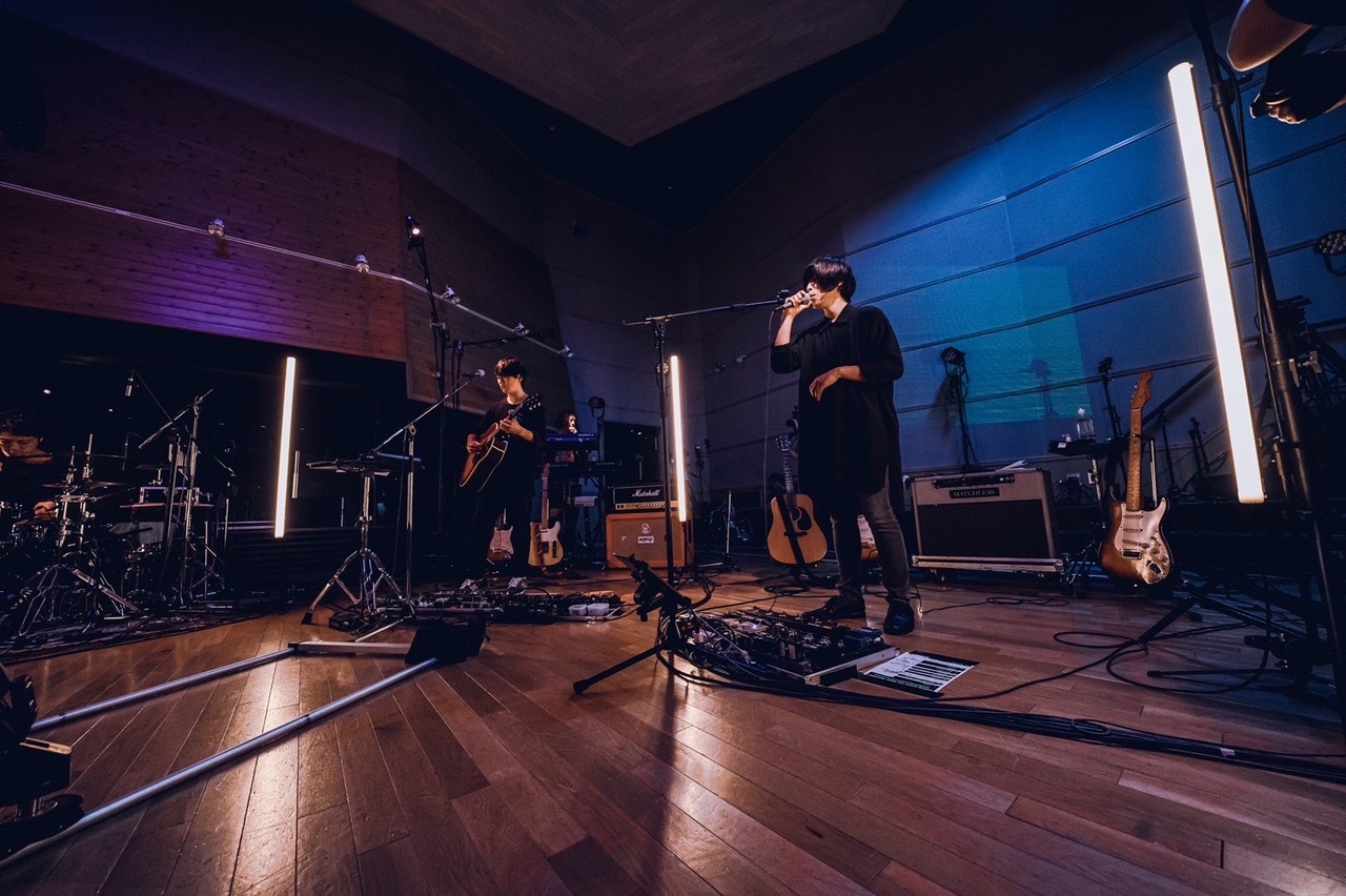オンラインライブということもあってか、この日のライブはメンバーのトークが非常に多かった。かなりラフでくだけた内容のものから、楽曲にまつわるエピソードや裏話など、リアルタイムでライブを観ているユーザーからのコメントを拾いながら、4人はアットホームな雰囲気で会話を繰り広げていた。また、今年1月に開催された10周年記念公演2デイズのドキュメンタリー映像を流し、メンバーが副音声的にコメントしていく場面も。舞台裏や演出についての話など、当日のことを思い返しながら和気藹々と話していたが、「照明さんも一拍ごとに、一緒に演奏してますから」という話など、ライブ制作に携わっているスタッフにもスポットを当てていたところが印象的だった。
