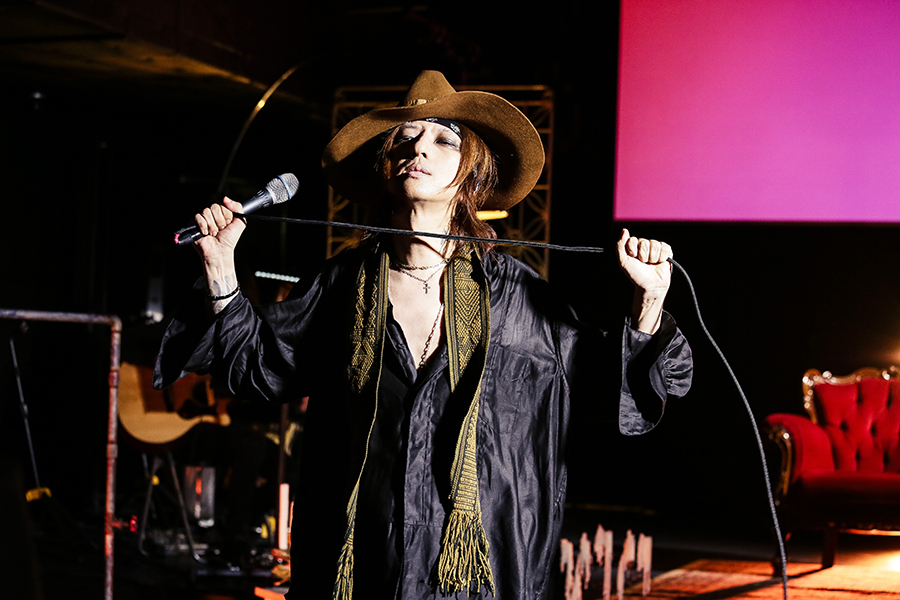 1曲目「ナザリー」を語りかけるように歌いだし、やがてK-A-Zのギターと呼応するように激情がのぞくと、表現者としての場を司る気高さとともに「これは私たちの世界だ」という親密な空気がモニター越しに観ているこちら側にも流れ込んでくる。〈新しい領域〉というのは一方から届けられる表現ではなく、観客とステージの双方で創り上げていく新しいライヴのあり方なのだと冒頭から実感することになった。その意識は、清春の表情や所作をつぶさに捉える映像監督YUTAROのカメラワークからも伝わってくる。