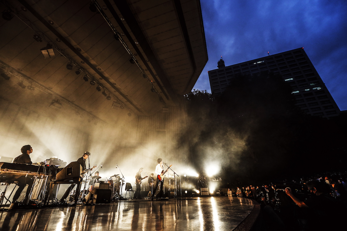 モニター越しに観ているのに生々しい臨場感のあるライブだった。どの歌もやけにリアルに響いてきたのだ。野音というロケーションもプラスに働いていたのではないだろうか。暮れていく日比谷の空が画面に映り込む瞬間がたびたびあり、その暮れ方が自宅の部屋の窓から見える空と一緒だった(当たり前か)。日比谷の空が日本中、いや世界中の空とつながっていることを映像からも実感できる。空だけでない。静かな曲では演奏とともに、日比谷の森に生息する虫の鳴き声が聞こえてきたのだが、自宅の部屋の外でも虫の声が聞こえた。バンドと日比谷の虫と自宅の虫のアンサンブル。