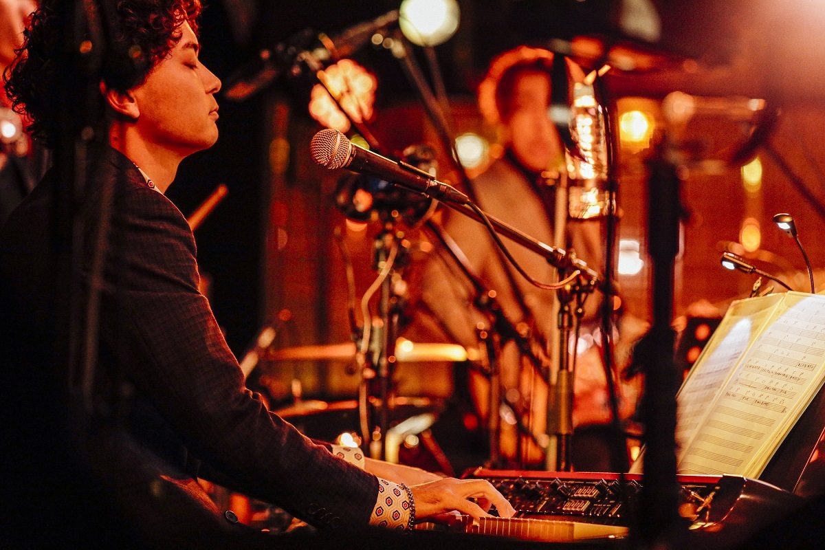 今回のライブは、開催にあたり、二つの情報が事前にアナウンスされていた。一つは、くるりのファンファン(Tp)、Gliderの栗田祐輔(Pf)をゲストに迎えた特別編成でライブを行うこと。もう一つは、ジャズマナーに倣い、ライブは一晩に2回行い、演奏曲目は変えないこと。現状、これまでと同じやり方で有観客ライブを開催することはできない。このライブももちろん感染防止ガイドラインに則った上での実施となり、バニラズは、勝手の違う状況を利用し、特別なライブを届ける選択をしたということだ。
