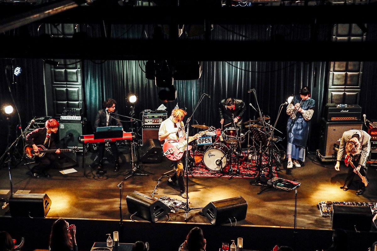 「次の曲でラストになります」と告げても、客席から「え~!」という声が返ってくることはないが、牧は「声出せないもんなあ。でも慣れたから」と前を向き、観客は代わりに拍手をする。「世知辛い部分もありますけど、こうして生で音楽を届けられるだけ、まだ幸せなのかなと思います。また新しい形で楽しめる場所を僕らも考えていきたいし、みんなにも元気でいてほしいと思います」と、「ラッキースター」が幸福の象徴として掲げられた。《♪砕けそーーーーうさ》といった具合に、いつもより音を長めに伸ばす牧はめちゃくちゃ気持ちよさそうに唄っているし、ときには視線を交わしながら、6人で鳴らす音はきらきらしている。一夜限りではもったいない。ステージ上のメンバーも、目撃者となった観客も、心からそう感じていたのではないだろうか。