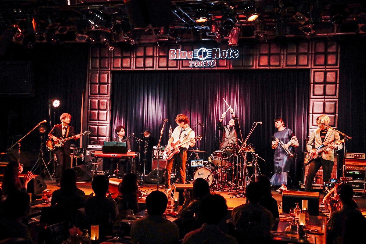 久々の有観客ライブ、しかもブルーノートということで、ここまではバンドも若干緊張気味で、ガイドライン上声を出せない観客もまだ心と身体をほぐしきれていない様子。しかし序盤特有のこの緊張感もライブの醍醐味の一つ。最初のMCで牧は「いや~、いいね! やっぱ人の前でライブするのって最高ですね!」と素直な感想を口にした。「みなさん思う存分、生の音を浴びてってください。よろしくお願いします!」と切り出してから始めた「パラノーマルワンダーワールド」は、栗田とともに完成させた曲でありながらも、この5人でライブで鳴らすのはこれが初。1番はテンポを落としてバラード調(イントロはギター+鍵盤、その先はボーカル+コーラス+鍵盤)。メロディの美しさ、歌詞に記した言葉を改めて真正面から伝える演奏にグッときた。