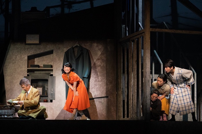 左より)渡辺勘治役 鹿賀丈史・小田切トヨ役 唯月ふうか・林役 河合篤子・渡辺一枝役 May’n・渡辺光男役 村井良大 (C)ホリプロ