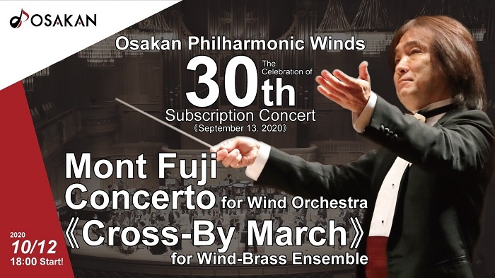 2020年9月13日(日)住友生命いずみホールにおいて開催された、フィルハーモニック・ウインズ大阪(通称:オオサカン)第30回記念定期演奏会の模様が、10月12日(月)18時から、オオサカン公式YouTubeチャンネルで配信される。