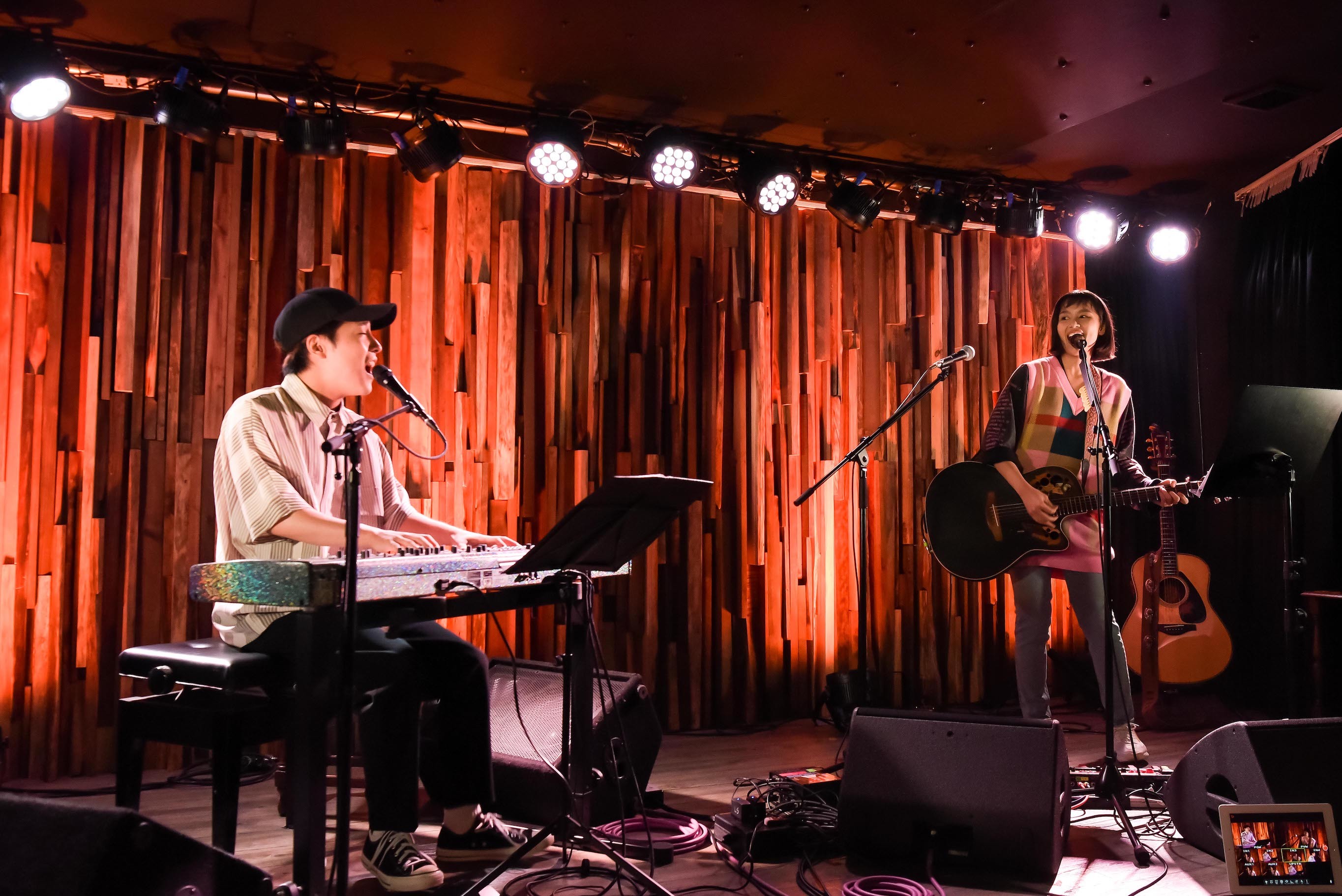 「ここからはジャジーな曲を2曲お届けしようかと。部屋の明かりをちょっと暗くして聴いてもらいたいと思います」(OTO)と歌い上げたのは、「Babygirl」。男女ボーカルでドラマを描いていく2人の『Sing N' Play』は、楽曲の造形がより高解像度で脳裏に浮かぶような贅沢さ。OTOのボイスパーカッションにAnlyが艶やかに言葉を重ねた「Sleep」もクールで、昨年と同じ組み合わせ、同じ曲でも新たなテイストが楽しめるのは、まさにライブの、『Sing N' Play』の化学反応であると言えるだろう。