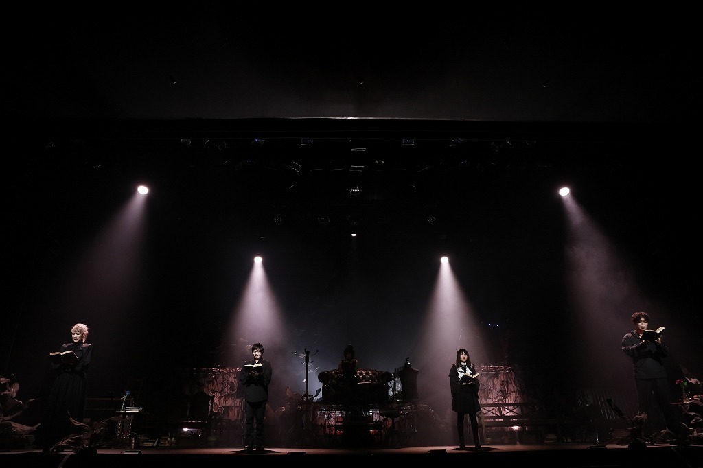 全ての演出・監修は末満健一氏、音楽は和田俊輔氏が担当。役者が椅子に座ったまま台本を読むスタイルではなく、ストレートプレイのように舞台上を動き、ときにはミュージカルのように歌い踊りながら演じていく。ソーシャルディスタンスに配慮した演出や、世界観を表現するのに欠かせないゴシックな衣装・舞台美術など、ただの「朗読劇」とひと括りにはできない豪華な舞台となっている。