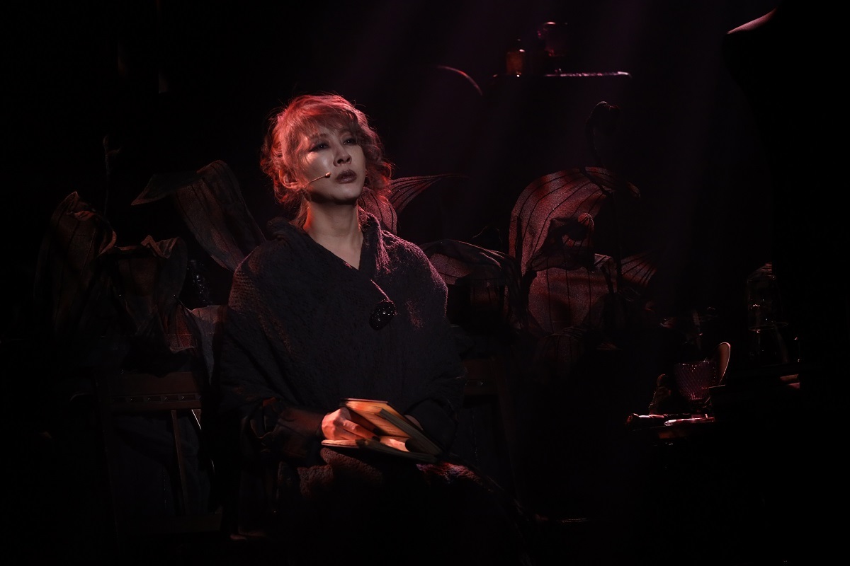 さらに朴は、「青い薔薇の教会」で、人を殺した吸血種の青年・モスカータも演じている。先ほどまで5歳のラッカを演じていたとは思えない、ハスキーな声と陰のある芝居で苦悩する姿に、驚かされた観客も多いはず。この短編は、赦されざる罪を犯した者と、それを赦そうとあがく神父による、切ない罪と罰の物語。罰としての死が赦されないモスカータは、神父から「罰せられるためではなく、いつか赦されるために」生きることを課せられていたのだ。ふたりの罪と罰の物語は、リリー自身が背負う永遠の罪と重なり、その後の展開にほの暗い呪いをかける。償いのために青い薔薇を育てるモスカータの誠実さや、罪の意識に苛まれるあまり衝動を爆発させてしまう危うさを、朴は繊細に演じてみせた。たった一編の物語だが、いつまでも胸に刺さり続ける芝居と歌声が印象的だった。