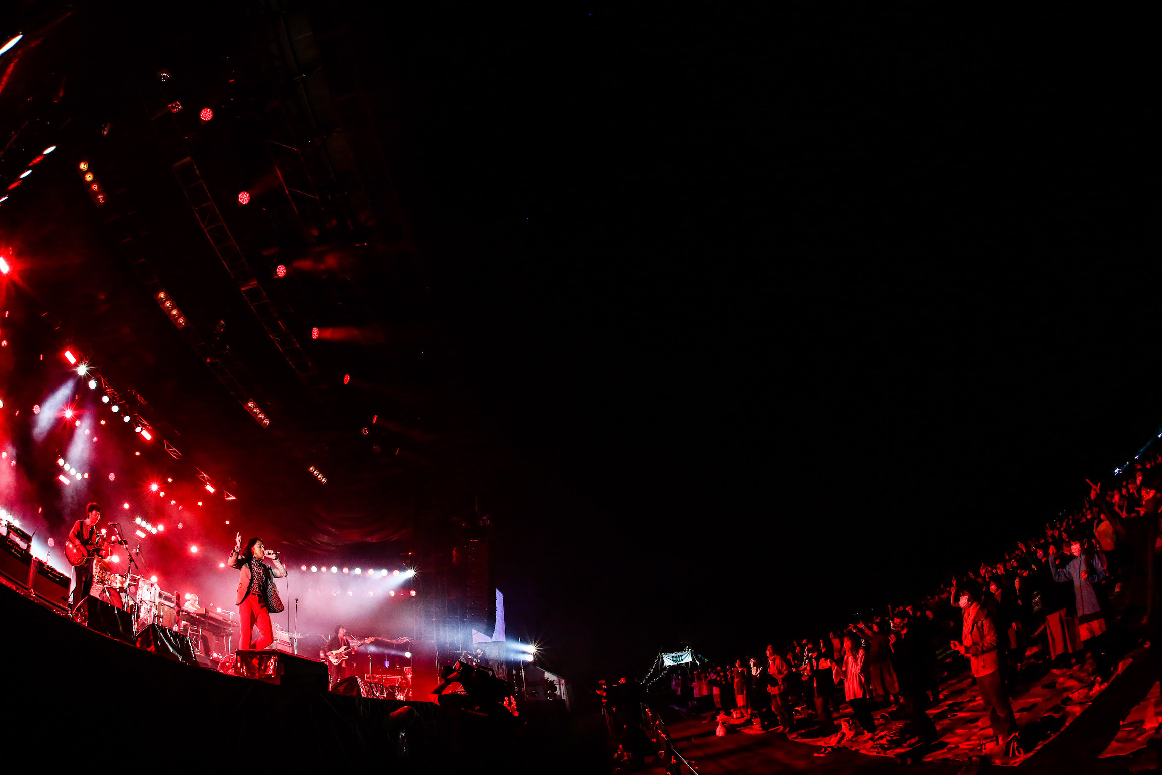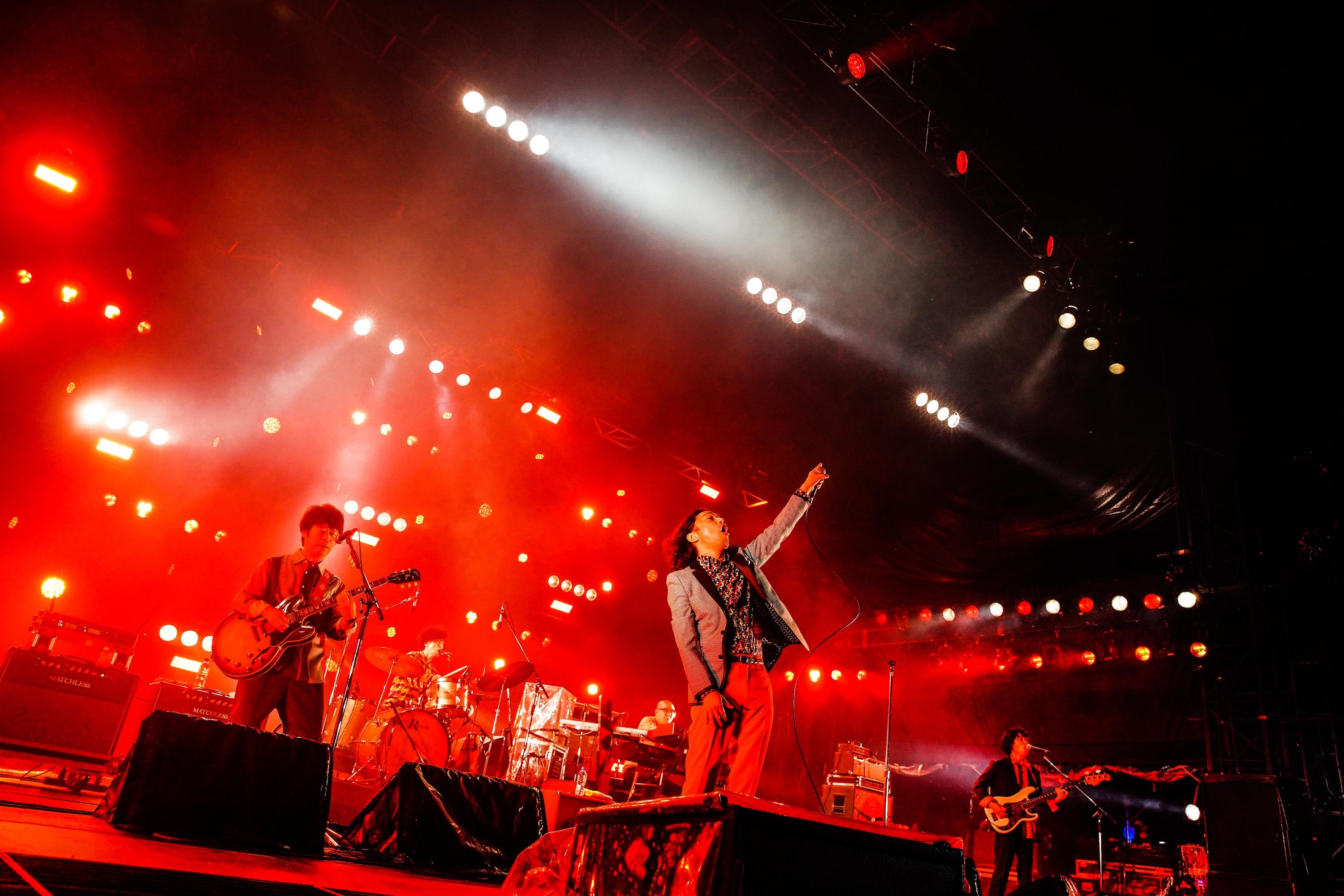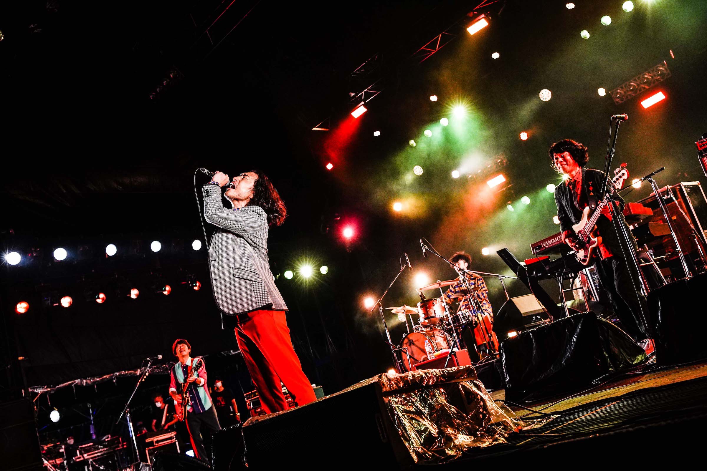 そして、初日の「RIGHT STAGE」のトリとなるのは、大阪が生んだ至宝ウルフルズ! SEが「アホグラミー賞」で1曲目が「バカサバイバー」なんて字面のセットリストが成立するのは、この世にウルフルズしかいない(笑)。幾度となく「心の声ー!」とけしかけるトータス松本(Vo.Gt)だったが、サビで連呼できない代わりに拳を上げるのも十分楽しく、ウルフルズの楽曲の強さには改めて感心させられる。そして彼らとしても、万博公園のステージは恒例の野外ワンマンライブ『ヤッサ』が行われるホームグラウンドとあって慣れたもの。