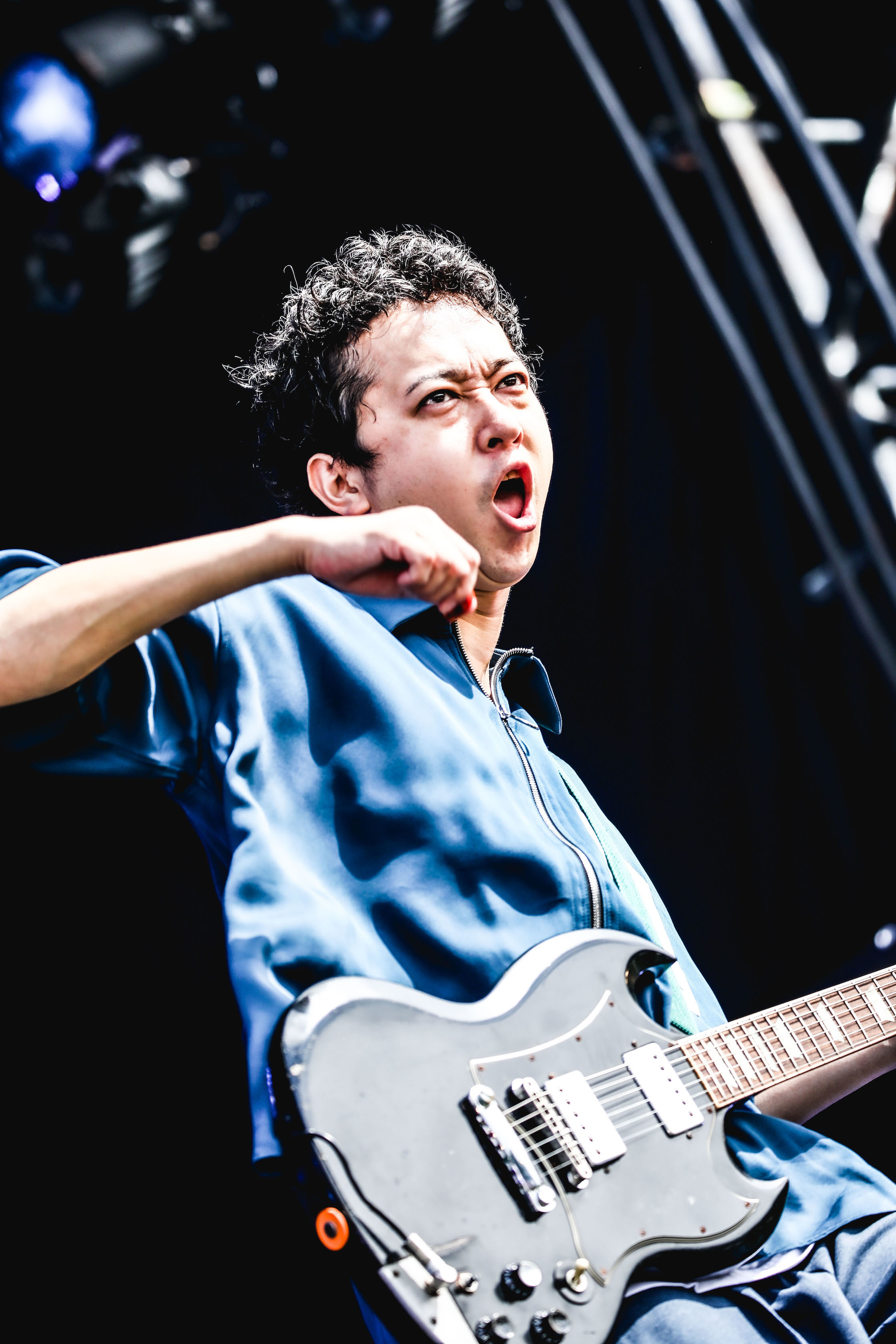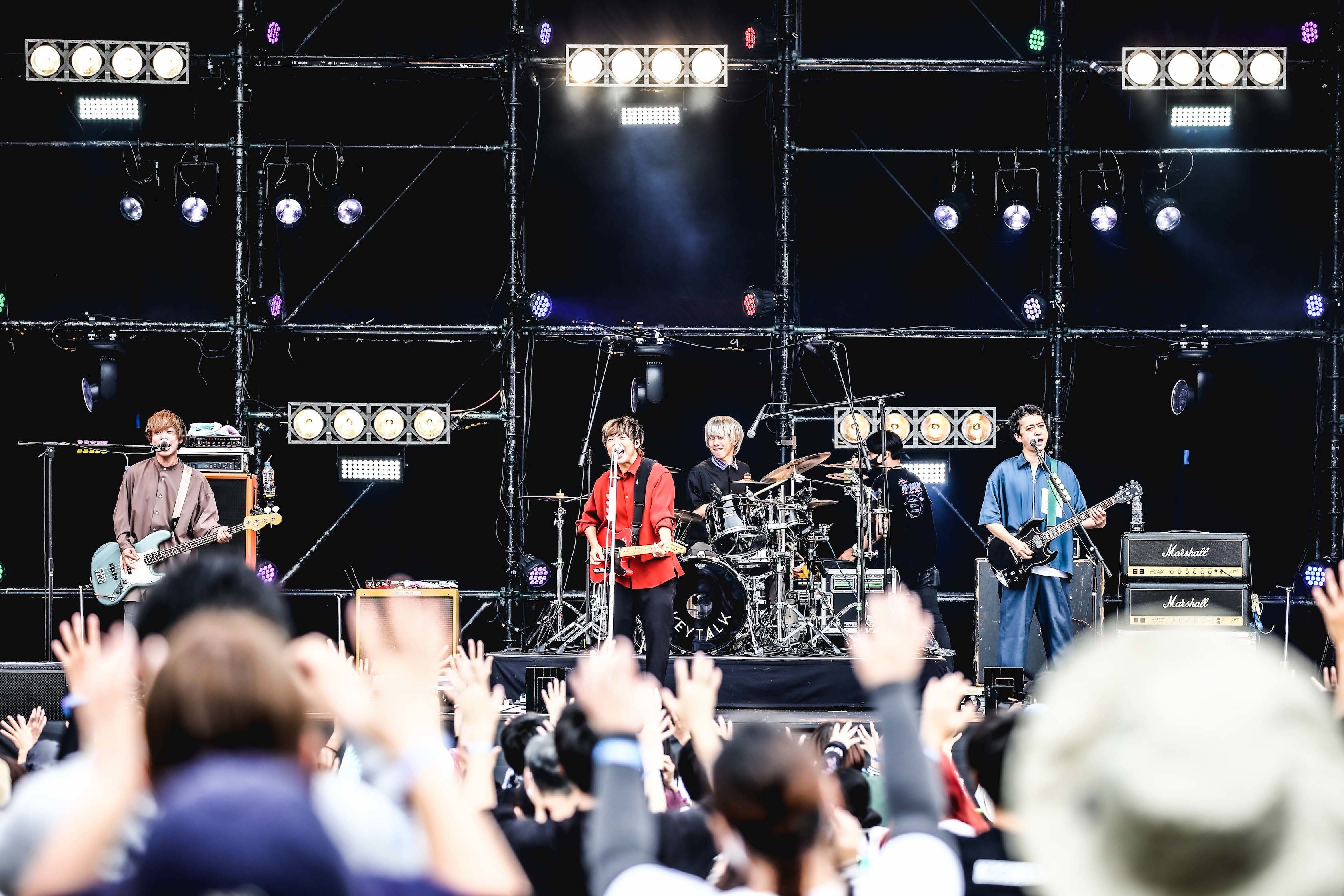 「本当に今日はすごくいい天気だし、開催できてよかったのひと言で。今年の夏はなかなか思うようにいかず……僕らは夏が大好きなバンドなので、たまりまくったものを全部吐き出していきたいと思います! こういうフェスの一番手、めちゃくちゃ得意です。テンション上げてまだまだいきます、よろしく!」(寺中友将・Vo.Gt)