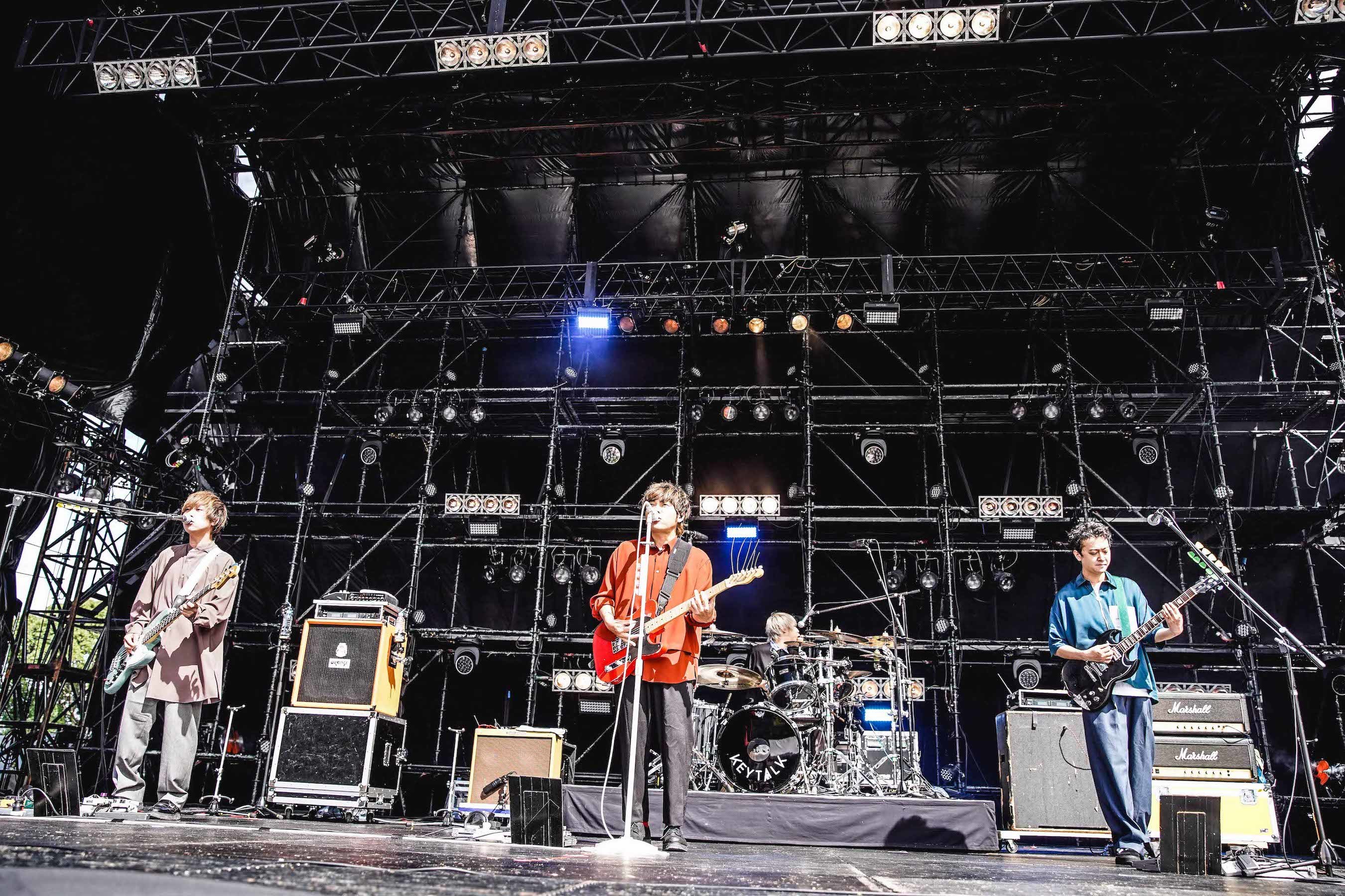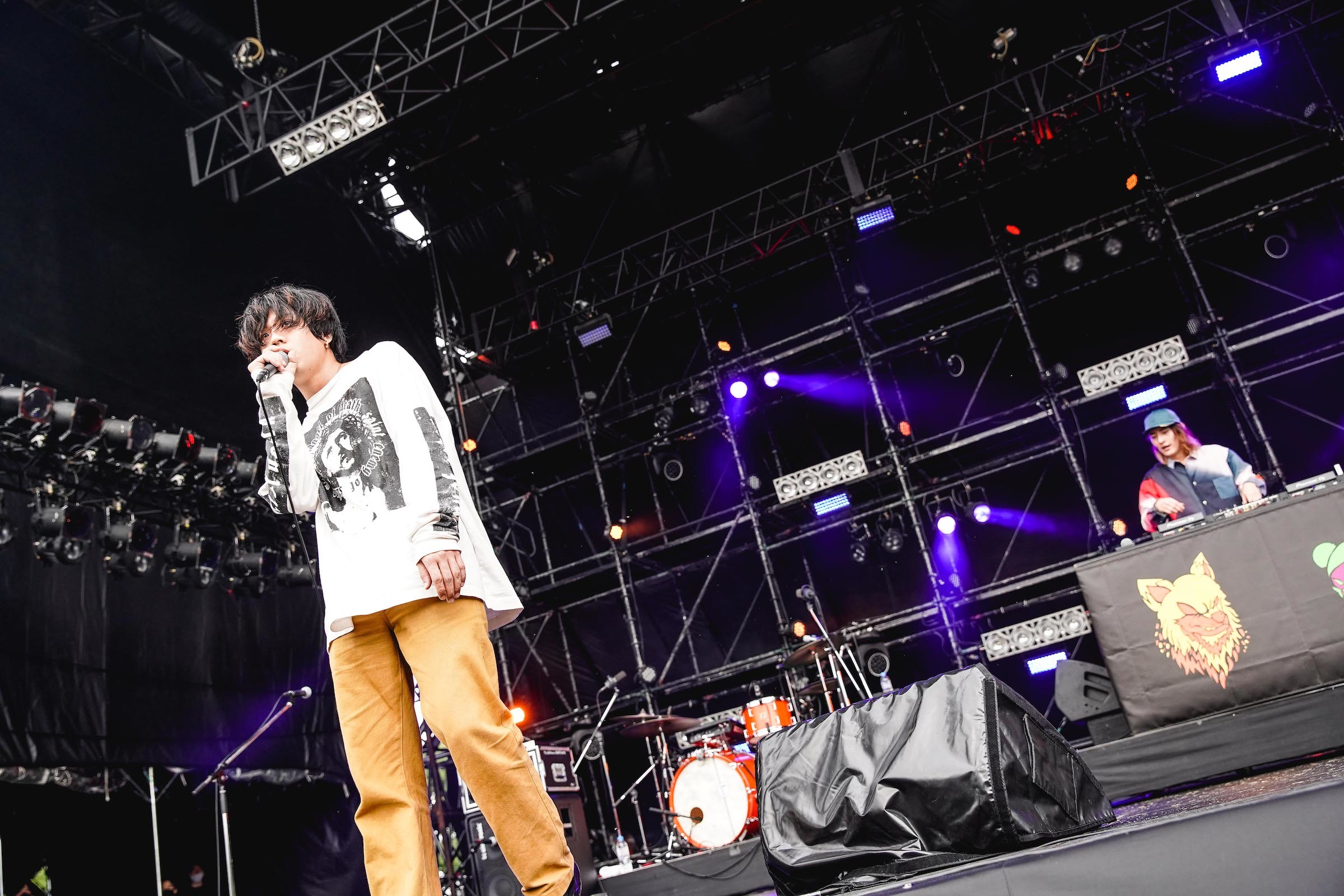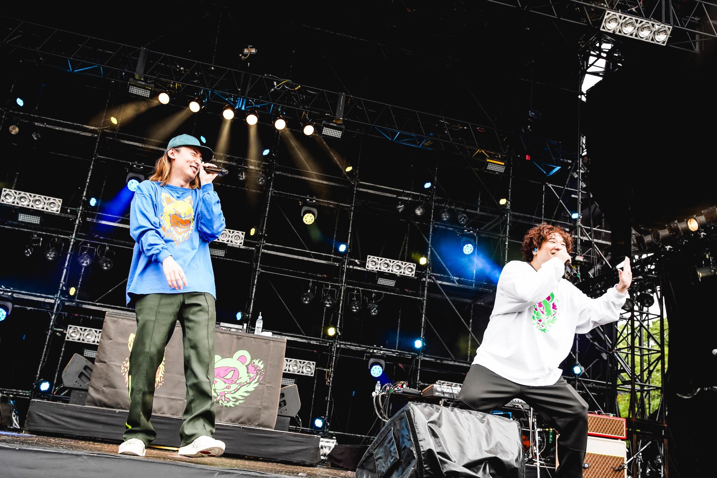 そんなMCを体現するような、四つ打ちビートで踊らせる「バミューダアンドロメダ」も余裕すら感じるライブバンドとしての佇まいで、スウィートなラブソング「Love me」、ヘヴィなリズム上で代わる代わるツインボーカルがスイッチする「BUBBLE-GUM MAGIC」と、その後も野外映えするポップソングの連続!