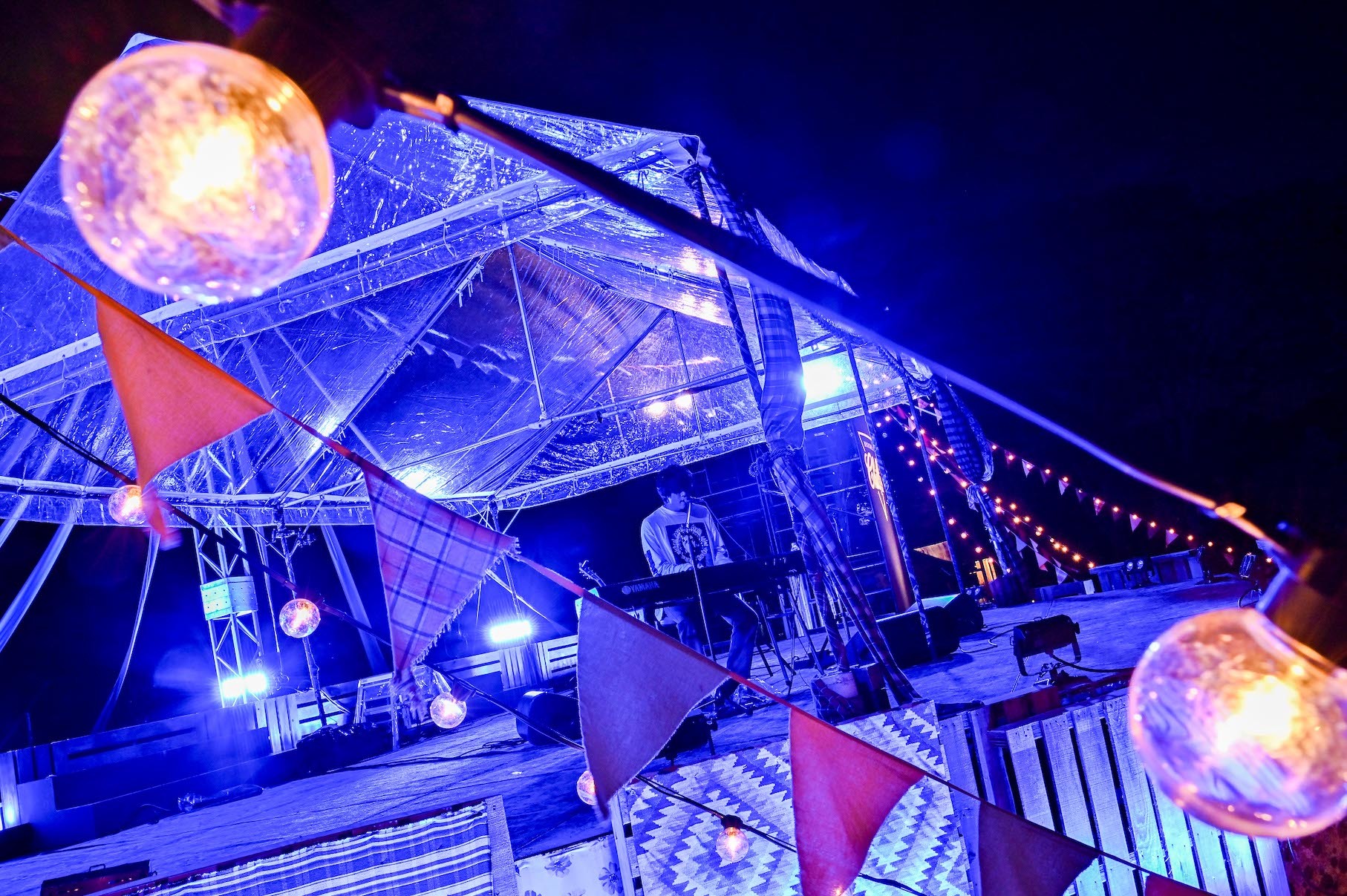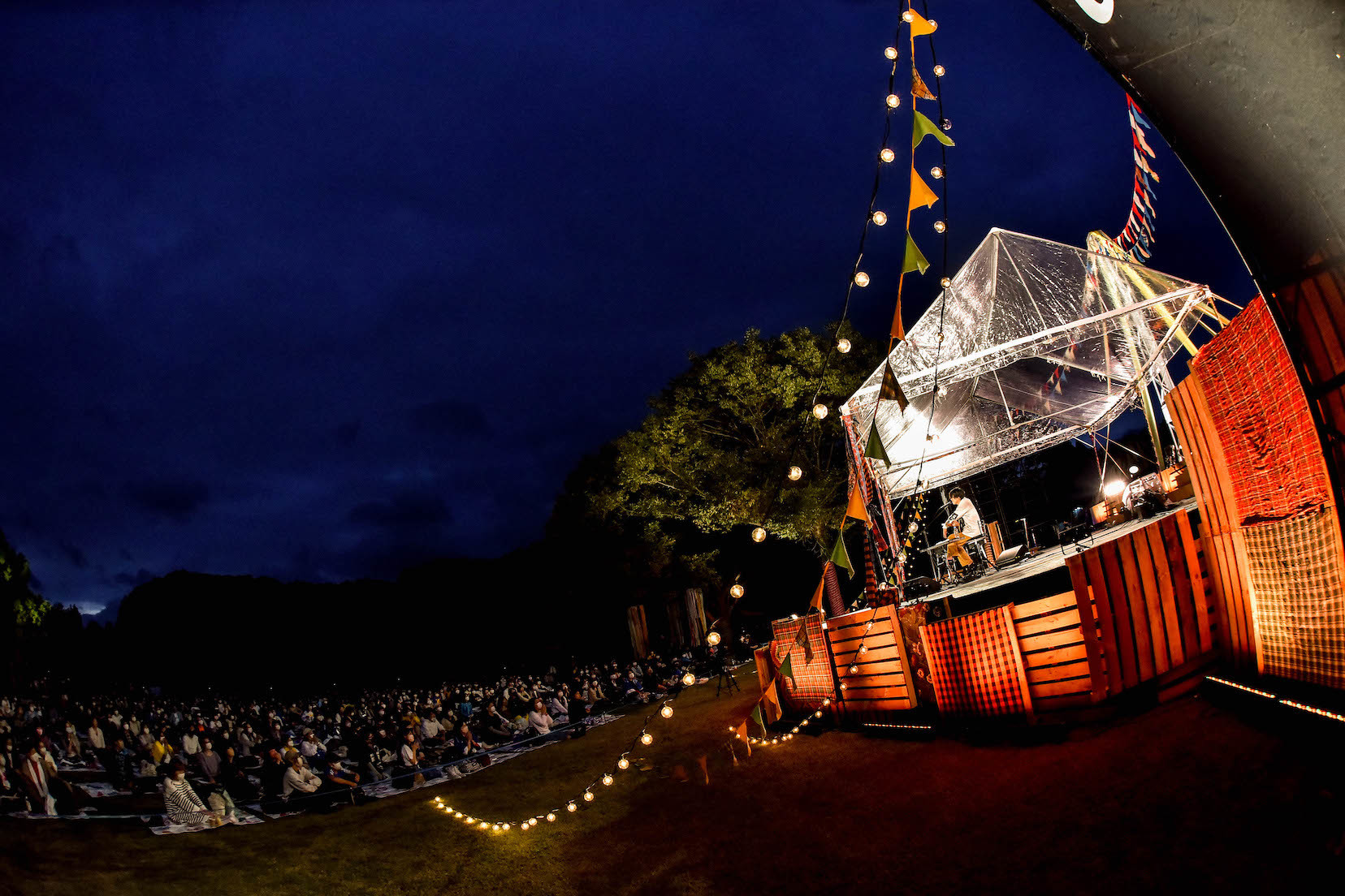 「ちょっとこれ、照明真っ暗にしたらどうなります? せっかくなんで暗い中でやりたくて」とスタッフにお願いして、ステージ上を真っ暗にして、空に星は出てなかったが、照明を星に見立てて、「月のこどもたち」を鍵盤で弾き語る。加藤登紀子のカバー曲「時には昔の話を」も歌い、最新アルバムに収録されているラストナンバー「EYE」。歌う前に「早く元に戻ればと思いますが、こんな時だからこそ凄く大切な思い出を作れてると思います」と語り、観客と自分たちとの関係性も語る。色々と語った後に、「勝手ながら思っています」と最後に付け加えたのが、押し付けがましくない観客への思いやりが伝わってきて素敵だった。こうして、今回のステージの中で一番自然が感じられ、まったりとくつろげた「Chillin‘ Vibes STAGE」初日が終わる。