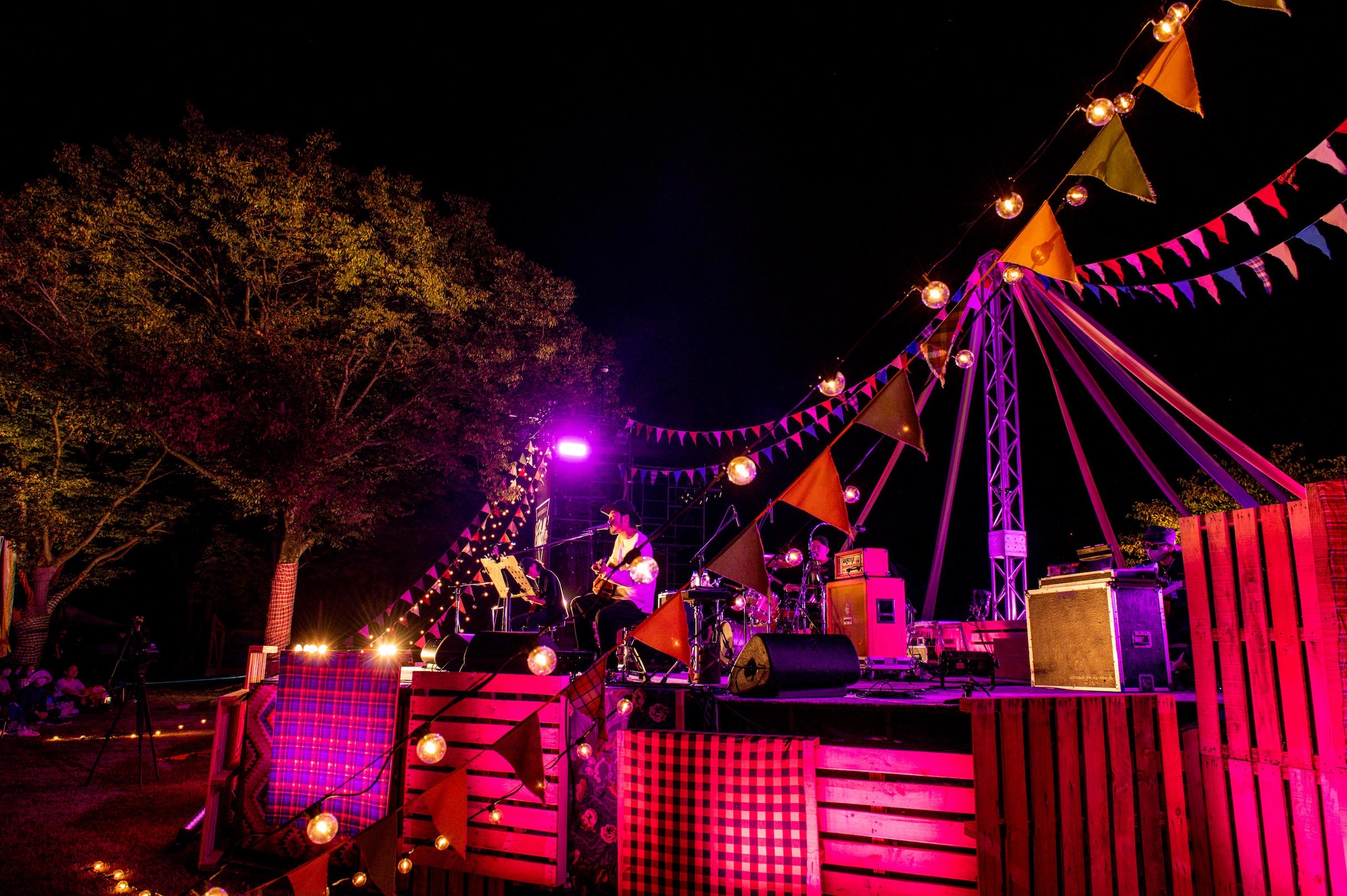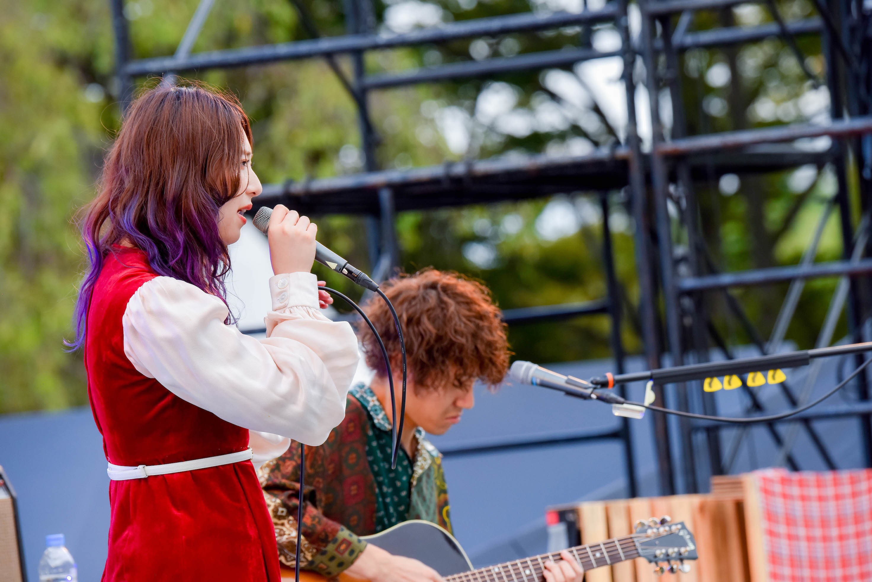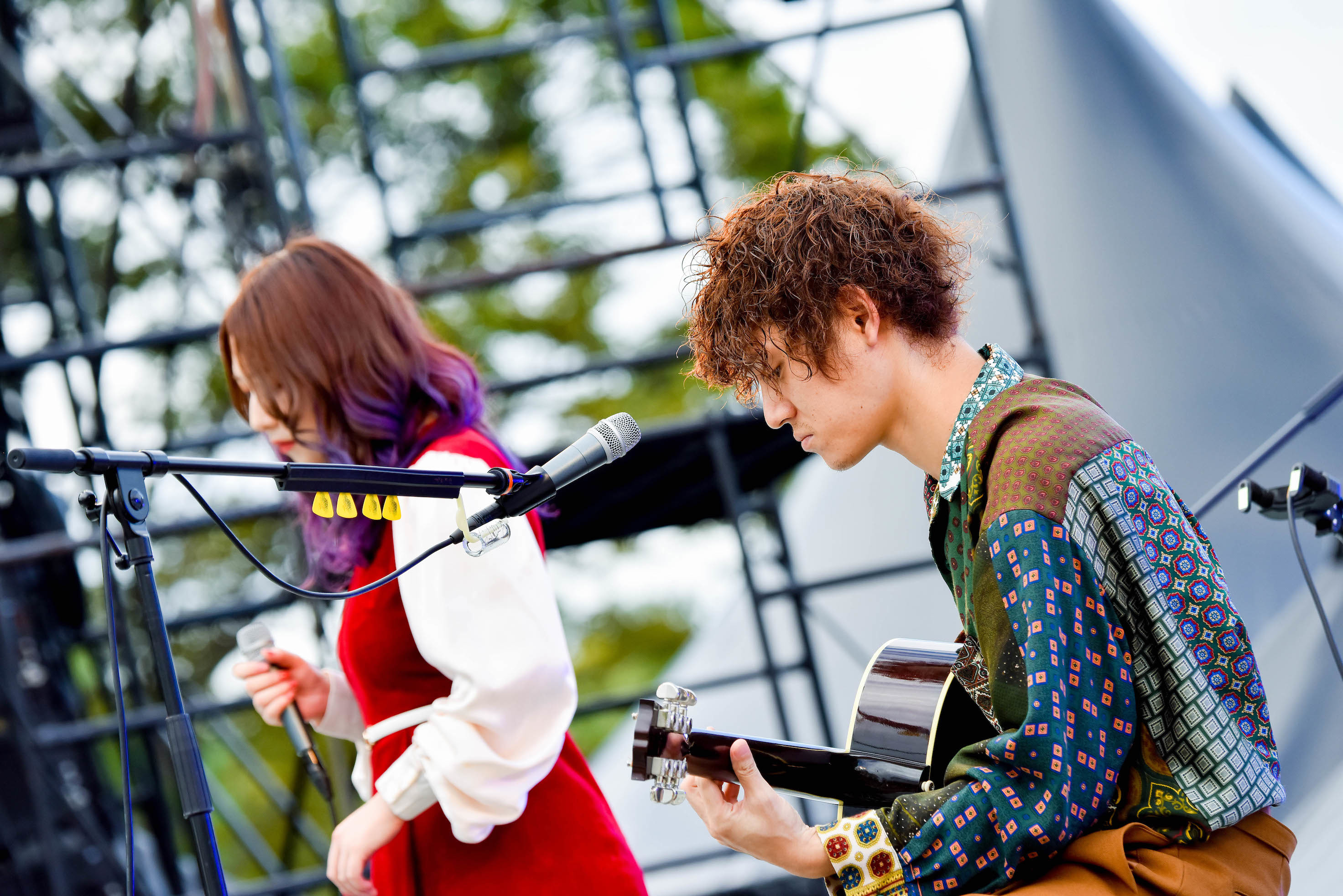 ステージ後半、「地元の空気を感じる曲。記憶の中の風景を想像して聴いてもらえたら」と、地元・長野県を舞台にした映画『実りゆく』のために書き下ろした新曲「By Myself Again」を披露。牧歌的なサウンドは時代を巻き戻すような、どこか懐かしい心象風景を感じさせてくれる。この日のライブが今年初の野外でのライブだったという彼ら。新曲の披露はバンド編成でも経験がなかったらしく、緊張したと心情をこぼしつつ、次はバンドのツアーでまた大阪に戻ってきたいと意欲を語る。最後、大きく息を吸い込み、エモーショナルに歌い上げた「大人になったら」。丁寧に綴られる言葉のひとつひとつに心奪われ、思わず目頭が熱くなる。ライブハウスやバンド編成でのステージとの違いがより色濃く出た、特別なステージに観客からはたくさんの拍手が送られた。