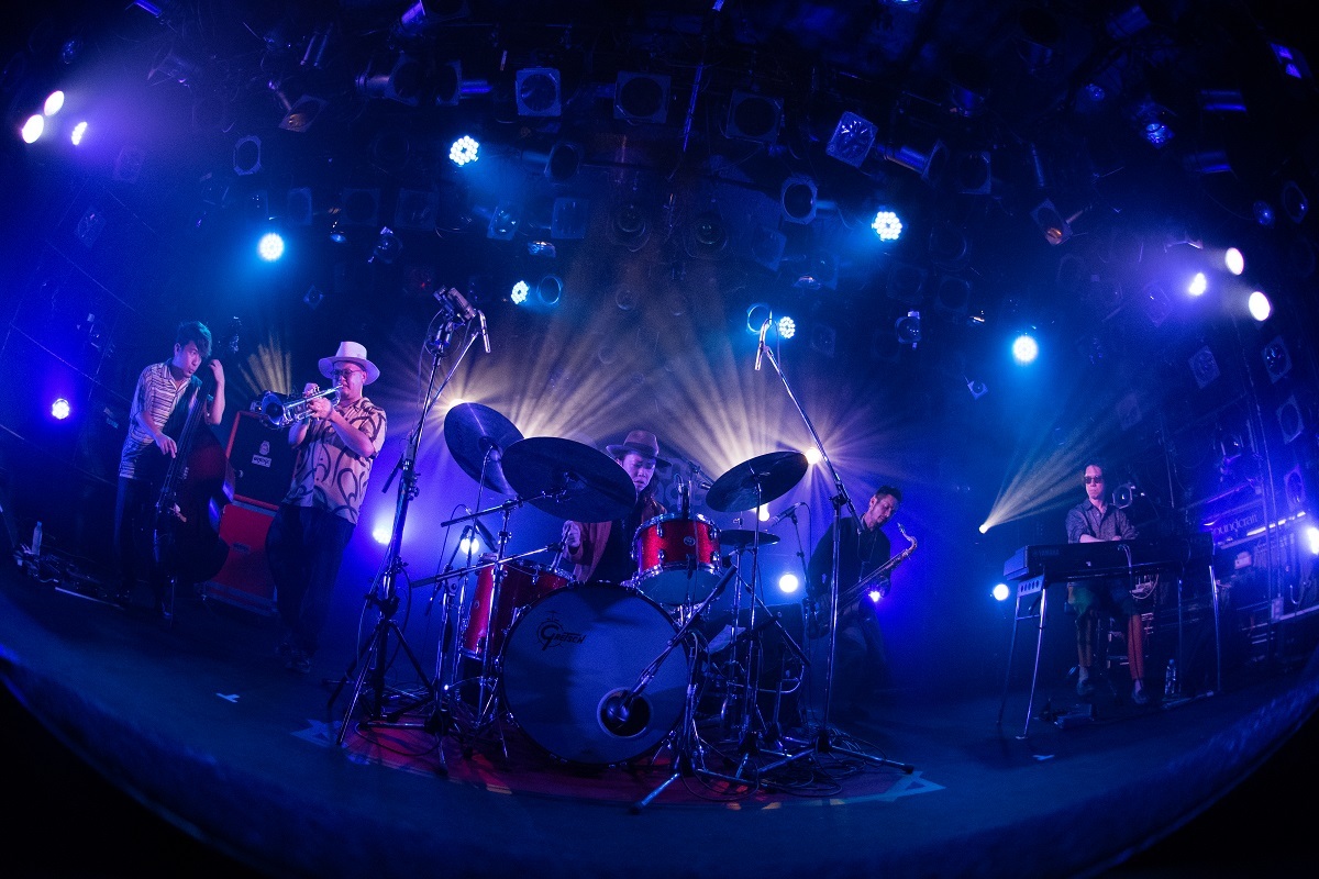 ドラムス・伊藤隆郎の第一声から、一気にリズムがスパークして曲は「Bring it on」へ。『Turn On The Light』の中でも屈指の熱血キラーチューンに、クラップしながら一斉に総立ちになる観客。ピアニスト・竹内大輔の熱演を、トランペット・織田祐亮とサックス・藤田淳之介が左右から煽る。久々の有観客ライブ、メンバーの気合と観客の期待が火花を散らし、体感温度がぐんぐん上がってゆく。