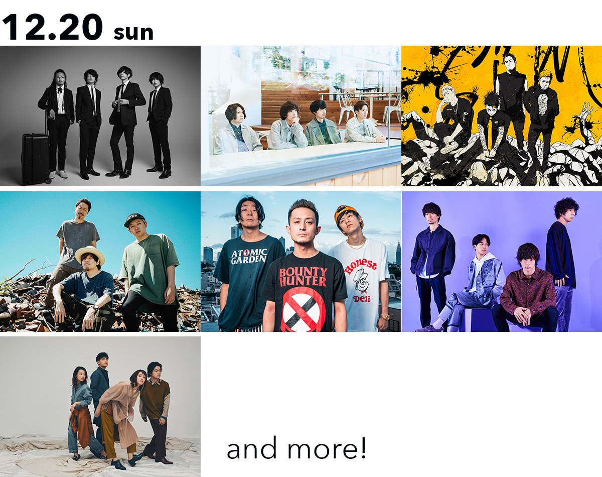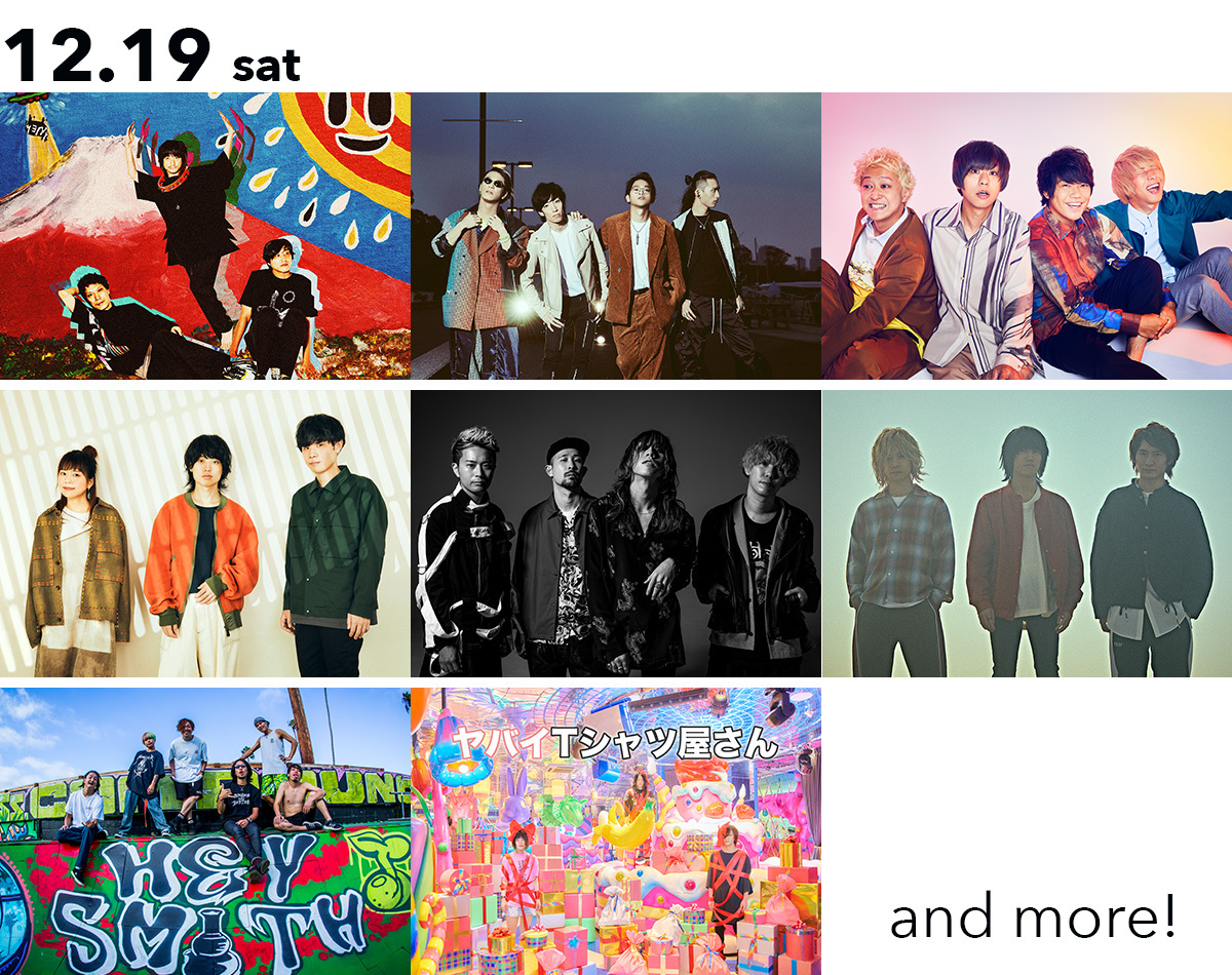 合わせて第1弾の出演者が発表となり、12月19日(土)にアルカラ、THE ORAL CIGARETTES、KEYTALK、Saucy Dog、SUPER BEAVER、BURNOUT SYNDROMES、HEY-SMITH、ヤバイTシャツ屋さん。20日(日)に[Alexandros]、SHE'S、SiM、10-FEET、TOTALFAT、フレデリック、緑黄色社会の計15組が決定。今後も出演者は追加発表される。