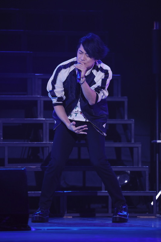 ライブはいよいよ佳境へと突入していく。続くステージは福山 潤。4人のダンサーを従えて登場した福山は最新アルバム収録の「展望録」、さらに1stシングル「KEEP GOING ON!」と本格的なダンスを見せつけ、スタイリッシュなステージングで観客を魅了。しかしダンサーが消えてひとりになって歌った「Breaking Dawn」では急にコミカルな小芝居を始めるなど、強烈なギャップを発揮した。最後は再びダンサーとともに最新シングル「パース・オブ・パーソンズ」をエネルギッシュに歌い上げて終了。またMCでは持ち前のマシンガントークが炸裂、大声で笑えない観客にとっては、笑い声を抑えるのが大変だったかもしれない。
