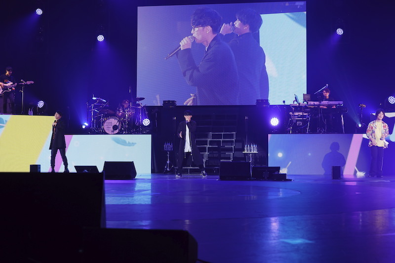 15分のインターバル休憩を挟んだのちに第2部のスタート。トップバッターを務めたのは、バーチャルアイドル7人によるYouTubeオーディション番組『ReFlap』のキャスト6人(生田鷹司、松岡侑李、佐香智久、濱野大輝、石井孝英、熊谷健太郎)。シンガーソングライターや俳優など、バラエティ豊かなバックボーンを持つキャストたちなだけに、ステージでもそれぞれの個性が爆発。キャストによるステージは今回が初めてだが、「Entertain」、「Believers」、「Start over」の3曲を熱唱し、高い音楽性と歌唱力もあいまって大きな存在感を示した。