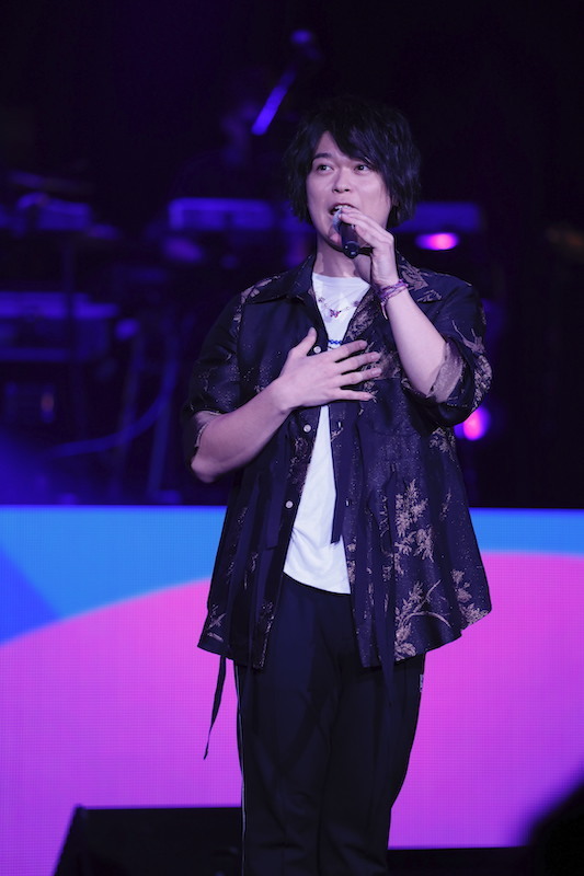 エモーショナルな土岐のステージから一転、ここから怒涛の作品ステージに入っていく。TVアニメ『SSSS.GRIDMAN』で主人公を演じた広瀬裕也が真紅のジャケットをまとって登場し、キャラクターソングシリーズから「ONLY I CAN」を披露。その後は特別コラボレーションとしTom-H@ckを呼び込み、本作品の原点でもある『電光超人グリッドマン』(1993年放送の特撮シリーズ)のOPテーマ「夢のヒーロー」を歌唱。赤ジャケットにふさわしいアツいボーカルで大いに観客を沸かせた。