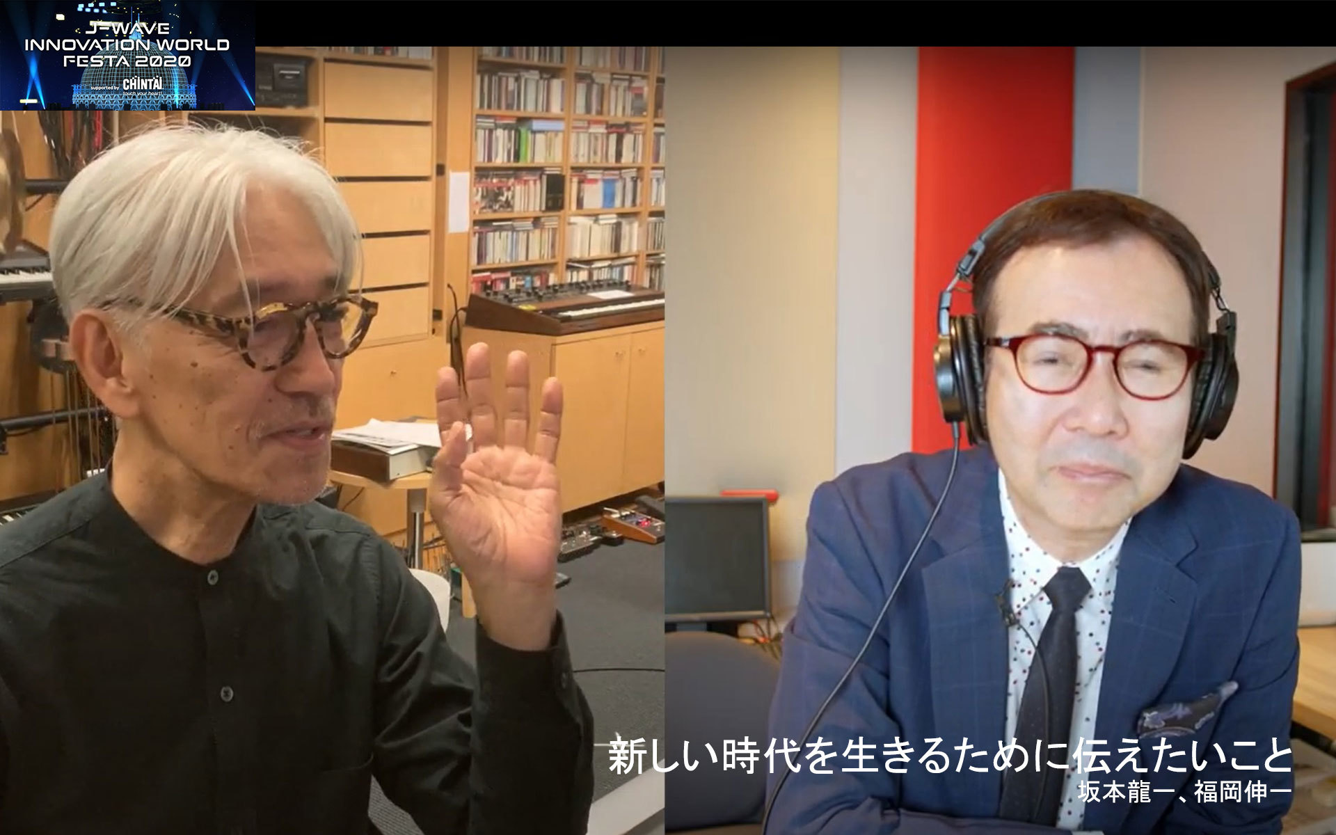 21時20からの「新しい時代を生きるために伝えたいこと」では、音楽家・坂本龍一と生物学者・福岡伸一氏が、アートそして生物学的視点からこれからの世界を読み解くトークセッションを行っている。