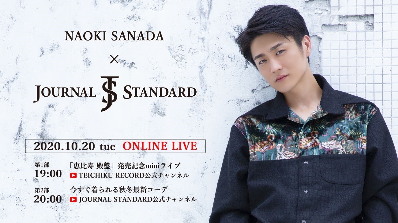 イベントは、テイチクレコードが配信するミニライブと、JOURNAL STANDARDが配信するファッショントークの2部構成となっている。ライブでは、「恵比寿 殿盤」に収録されている楽曲やカバー曲を歌唱。ファッショントークでは、真田ナオキが着るJOURNAL STANDARDの秋冬最新コーデをプレスルームから生配信。実際に撮影で着用したアイテムを中心に、今すぐ着ることができる秋冬最新コーデを紹介する。
