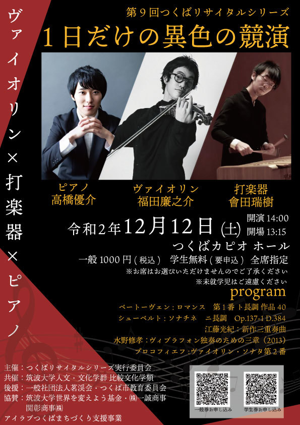 その後も筑波大学の学生有志が主催するつくばリサイタルシリーズへの出演させていただきます。若い演奏家が揃う中、昭和生まれは僕1人となり隔世の感…中堅としての責任をしっかり担わなければという思いです。(公演情報欄参照)
