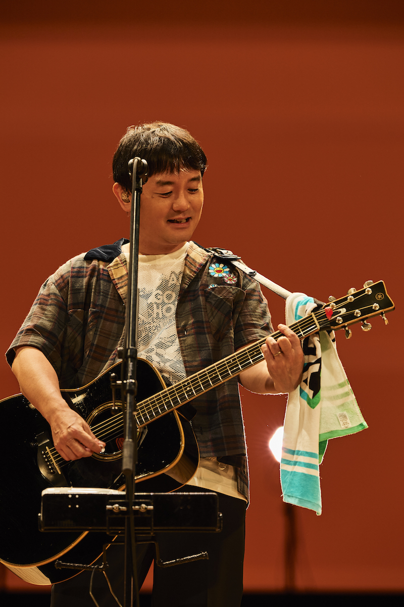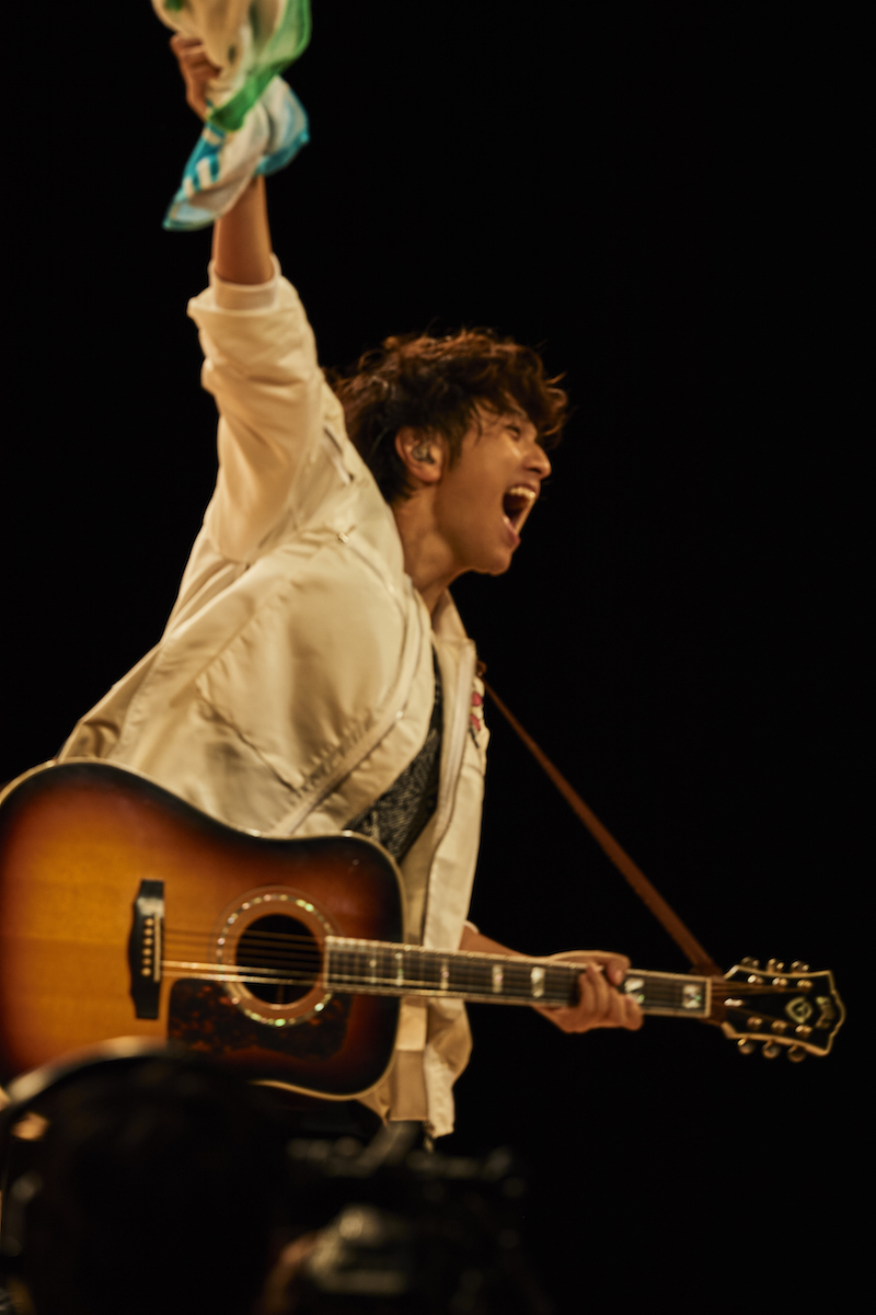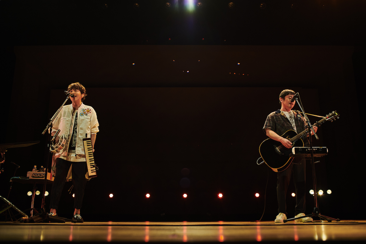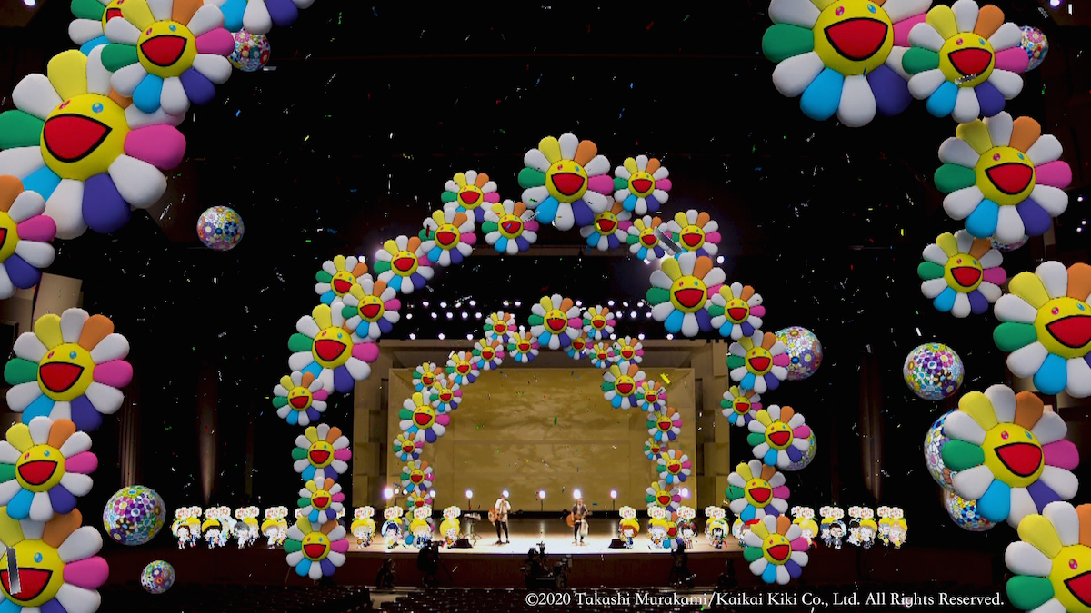 「俺たちは引き続き、こんな感じで走り続けると思います」「次は最終日。みんなと最高の最後を迎えたいと思います」「今日は思い出深い、神奈川県民ホールで12年ぶりにやれて、ホントに嬉しかったです」と言葉を重ね、「今の俺たちの気持ちにピッタリです。“かなけん”で昔歌った、この曲を歌いたいと思います」と紹介されたのは、最後の楽曲「またあえる日まで」。朗らかなメロディとハーモニカの音色、「またあえる日まで」の大合唱が鳴り響き、大きな感動が広がる。1公演目に続き、アーティスト・村上隆による「お花」のアートが画面いっぱいに咲き誇るなか、ライブはエンディングを迎えた。