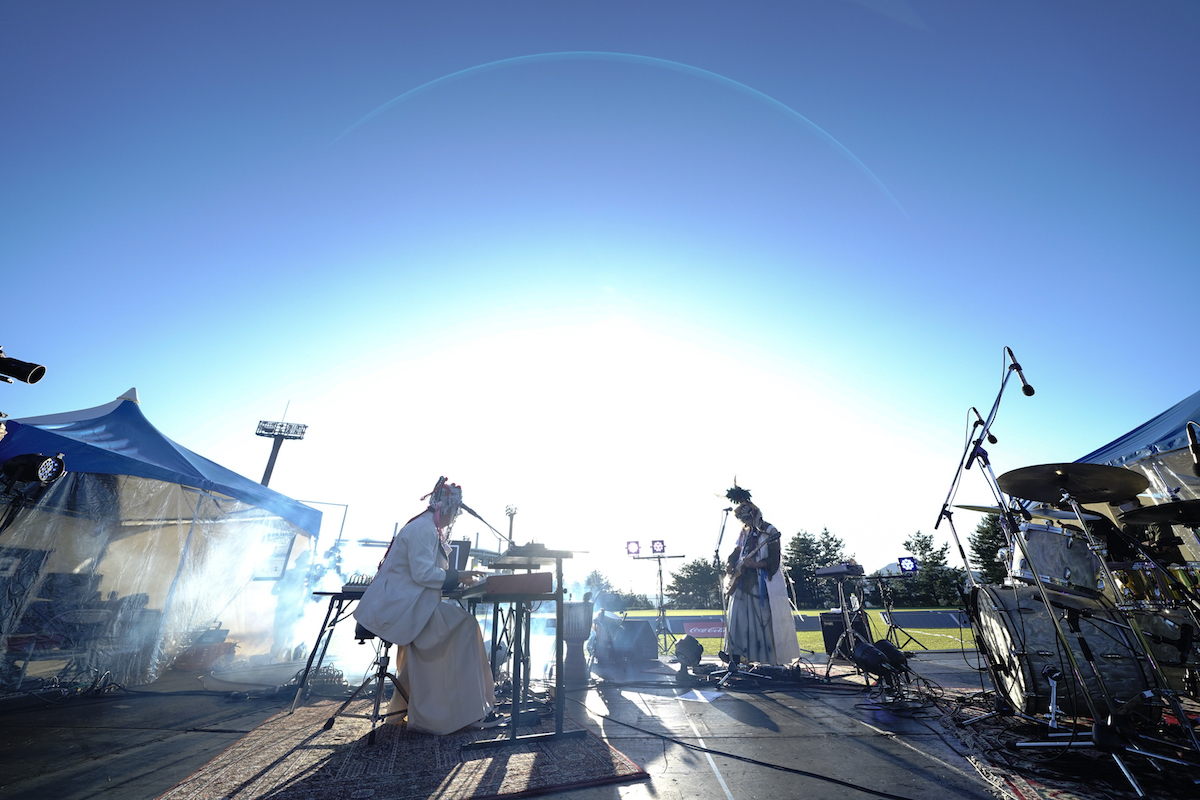 これは正直、仕方がないこと。新型コロナウィルスに対する国や地方ごとの認識や方針、対応は様々で、どれが正解か?という答えは出ていない。しかしながら、本来は1年近くをかけてじっくり準備するはずのフェス開催に対して、本番前2か月の段階でその形態(この時点では中津川の会場の使用自体が危ぶまれていた)から抜本的な見直しを迫られるというのはあまりにハード。そういうイレギュラーによって苦渋の決断をしたフェスは今年いくつもある。そんな中で、それでもなお、どうにか開催への道を模索し続けた佐藤タイジや『SOLAR BUDOKAN』チームの情熱たるや凄まじい。しかも、代替としてどこかの大会場を押さえて一挙に生配信or収録をするのではなく、複数の所縁ある土地や会場を選び、その都度撮影を行なう方式に着地したのだから、言葉を選ばずに言えば、もう酔狂の域だ。