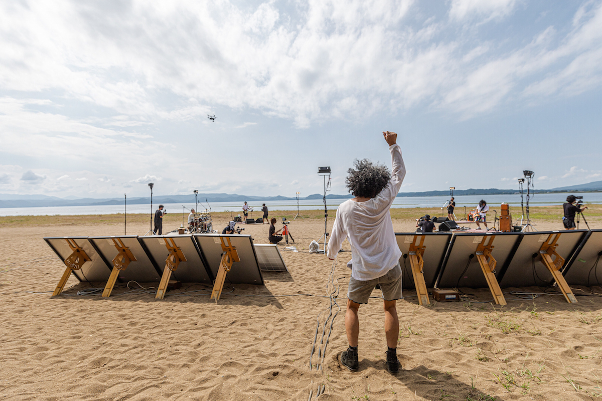 同フェスが、今年は“ハイブリッド開催”に踏み切るというアナウンスがされたのは、8月のこと。この“ハイブリッド開催”というのは、有観客ライブと無観客ライブ、収録と生配信など異なる環境下でのライブ映像を、一本の配信の中で次々に流していくやり方を指す。そして、個々のライブ演奏や収録、配信などに使用される電力を太陽光でまかなう、というものであった。