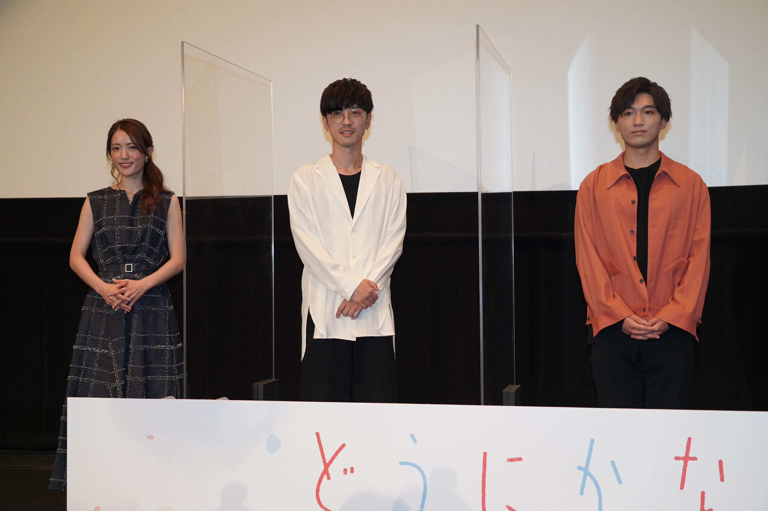 ここで、イベントに不在のEpisode1に出演の花澤香菜、Episode3に出演のファイルーズあいの2人からのメッセージが到着。花澤からは、「せっかくの舞台挨拶の機会に参加できないのがとても寂しいです。皆さま楽しんでいらっしゃいますか?この作品は、誰にも話したことはないけれど当事者にとって大事な出来事を、第三者の目でこちらもそわそわしながら見守っているような、秘密を共有してしまうような、うまく言えませんがそういう作品だと思います。劇的に人生が動くわけではないけれど、そこで感じた痛みやときめきが原動力になって、どうにかこうにか日々を生きていける。淡々と正直に映し出される日常は、客観的に見たら案外良いものかもしれません。上映後皆さまの帰る足が、少しでも軽くなっていますように!」。