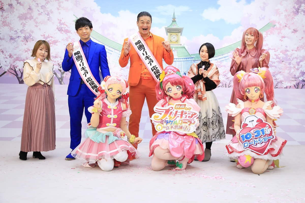 また、イベントでは「映画プリキュア 応援隊長」を務めるお笑い第7世代 熱血コンビのティモンディが、桜吹雪を撒きながら登壇。オリジナルの名乗りを披露する一幕も。前田裕太「細かいことは力で解決! キュアパワー!」、高岸宏行「日々鼓舞、日々応援、みんなのサポーター!キュアデカオレンジ!」とポーズ付きで名乗りを披露すると、悠木・成瀬・引坂も大興奮。前田は「プロのプリキュアになるつもりでここに来たので。プリキュアになるぞという意志でここに来ました!」と今日の意気込みをコメント。高岸も「プリキュアのこれからの飛躍を全力で応援して、応援に命を懸けに来ました。全てを出し切るつもりで来ました。」と全力でプリキュアと本作への応援の意気込みを語った。