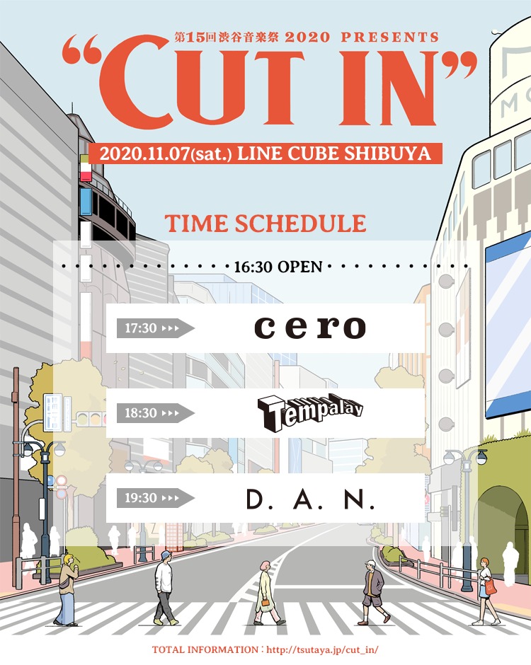 渋谷音楽祭実行委員会とCCCミュージックラボがコラボレーションし、渋谷区が2020年11月7日(土)にLINE CUBE SHIBUYA(渋谷公会堂)にて開催する『第15回 渋谷音楽祭 2020 presents “CUT IN”』が、タイムテーブルと配信チケットの販売を発表した。