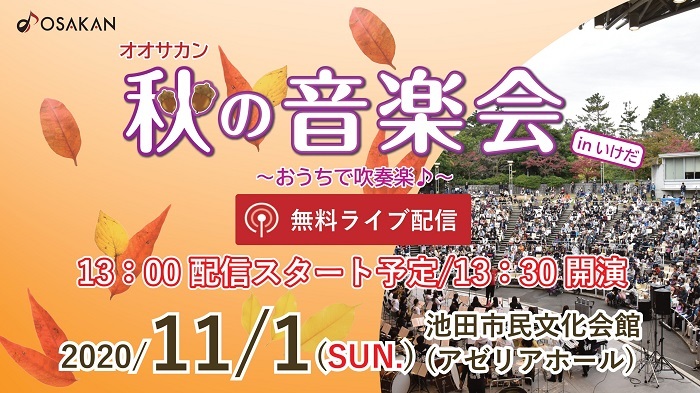 本公演は、フィルハーモニック・ウインズ大阪(通称:オオサカン)が毎年行っている秋の音楽会で、「秋音」と呼ばれ親しまれている。今回は池田市立渋谷中学校吹奏楽部、大阪府立池田高等学校吹奏楽部をゲストに迎え、また団としては初めてのライブ配信が行われる。