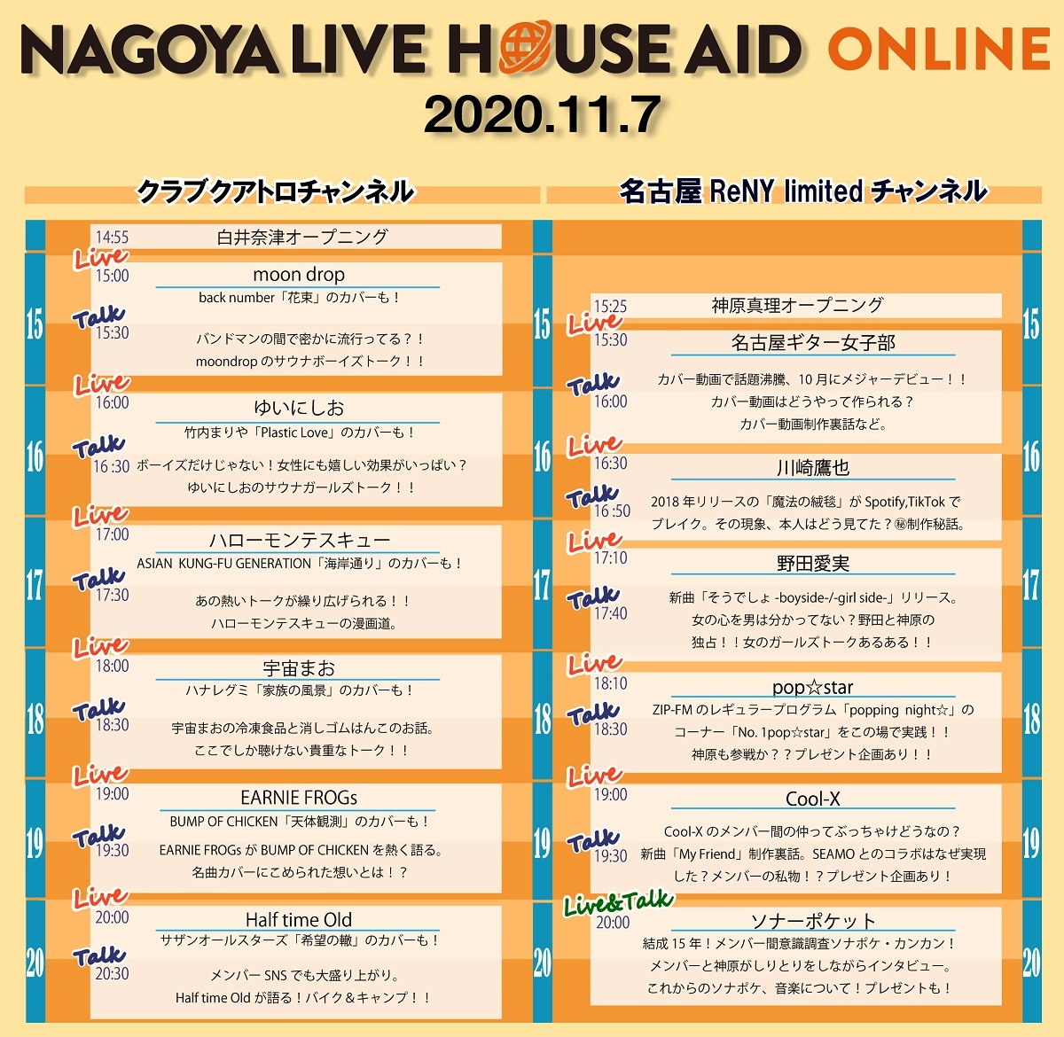 NAGOYA LIVE HOUSE AID -online- タイムテーブル