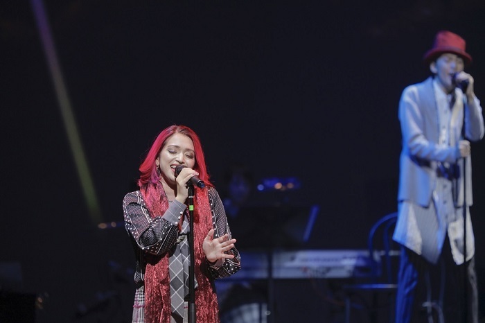 同じく歌詞が印象的だったのは、福井と実咲が揺れ動く男女の“別れたいけど好き”と言ったアンビバレントな心を歌った“Hemming and Hawing”だが、二人の抑制の効いた表現と共に大人な世界観に仕上がっていた。