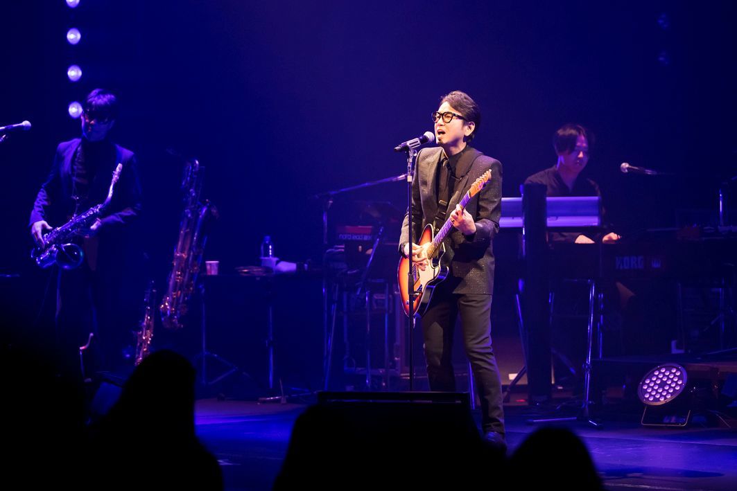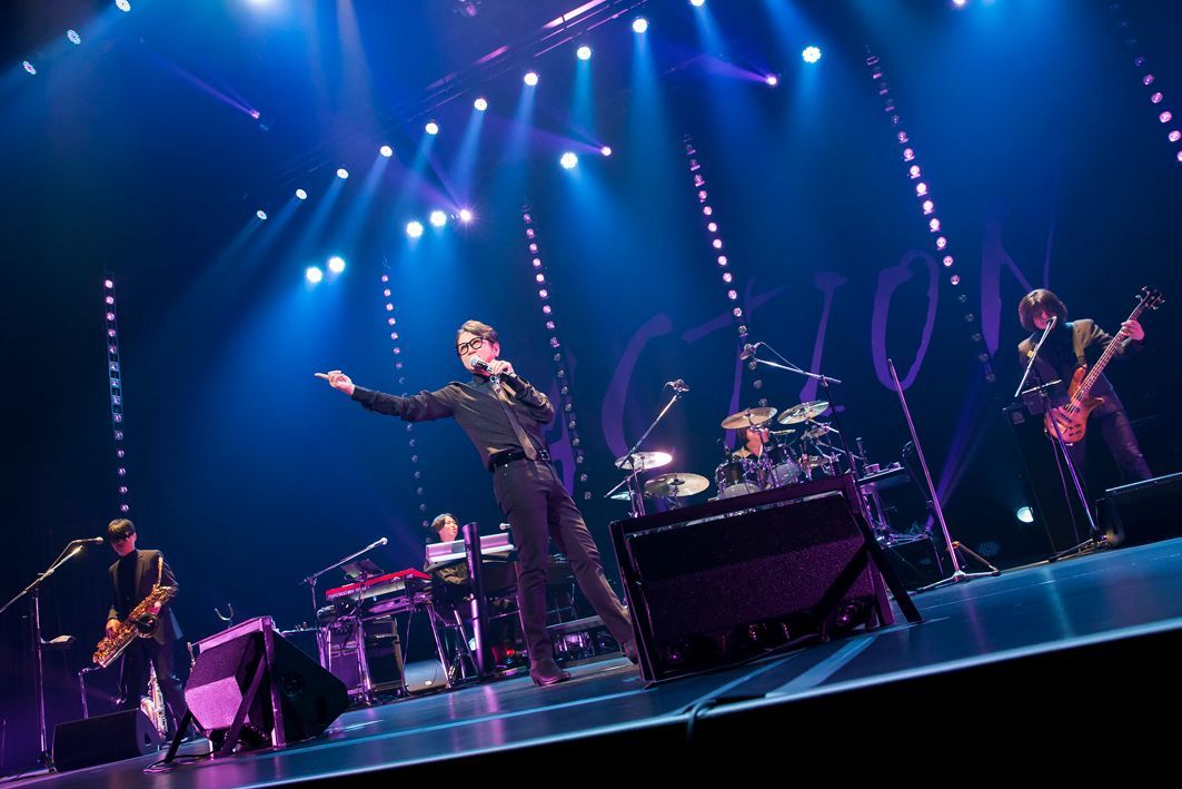 前半は最新アルバム『フジイロック』や『大人ロック』収録曲などを、サポート・バンドとの盤石のコンビネーションでじっくりと聴かせていく。いい感じで客席が温まった頃を見計らい、中盤は「ジュリアに傷心(1984)」「星屑のステージ(1984)」「WANDERER(1987)」と、80sチェッカーズ・ナンバーを畳み掛ける。これには会場も総立ち。各々の座席で体を揺らしたり、クラッピングしたりと嬉しさと興奮を全身を使って懸命にステージに伝える。それぞれの心の中の喝采を受け止めたフミヤは「1回座ろっか!声を出せないつらさはあるよね」と客席を気遣う。