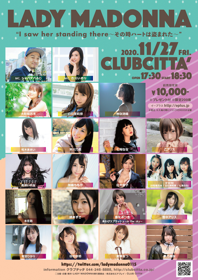 11月27日(金)、川崎CLUB CITTA'にてセクシーアイドルによる歌の祭典『LADY MADONNA拡大版I saw her standing there~その時ハートは盗まれた~』が開催される。