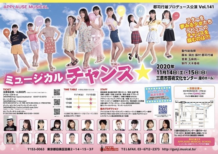 2020年11月14日(土)・15日(日)三鷹市芸術文化センター(星のホール)において、ミュージカル 『チャンス☆』の上演が決定した。